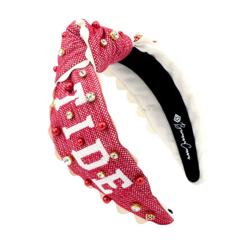 Rock your Alabama pride with our officially licensed collegiate cross stitch headband! Featuring the iconic ROLL TIDE logo, adorned with sparkling crystals and pearls. Comfortable for everyday wear. Perfect for any fan looking to show off their team spirit in style!