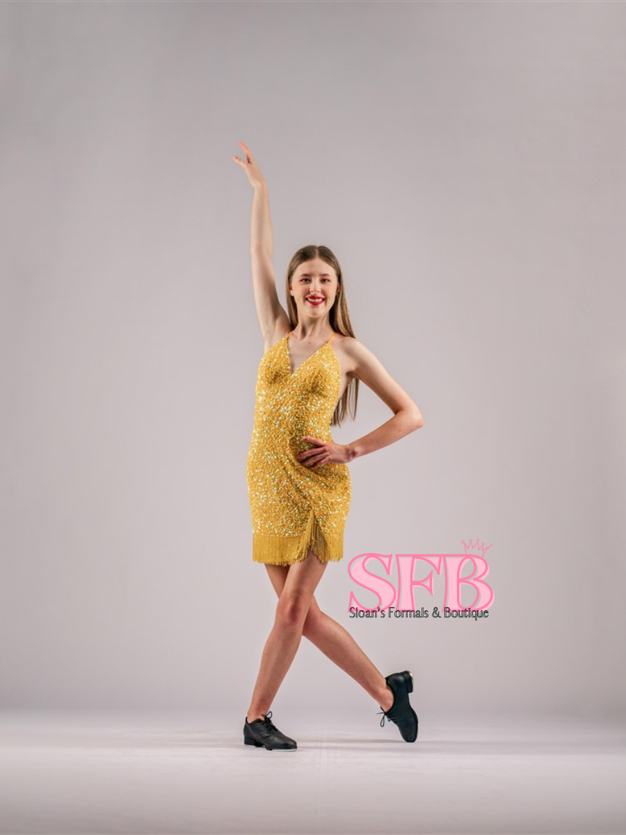 Look your best in this sparkling Aleta 711 gown! This v neck short formal gown catches the eye with its fully sequined exterior. It's the perfect combination of elegant and eye-catching, with fringe detailing at the bottom and open back for an extra element of style.