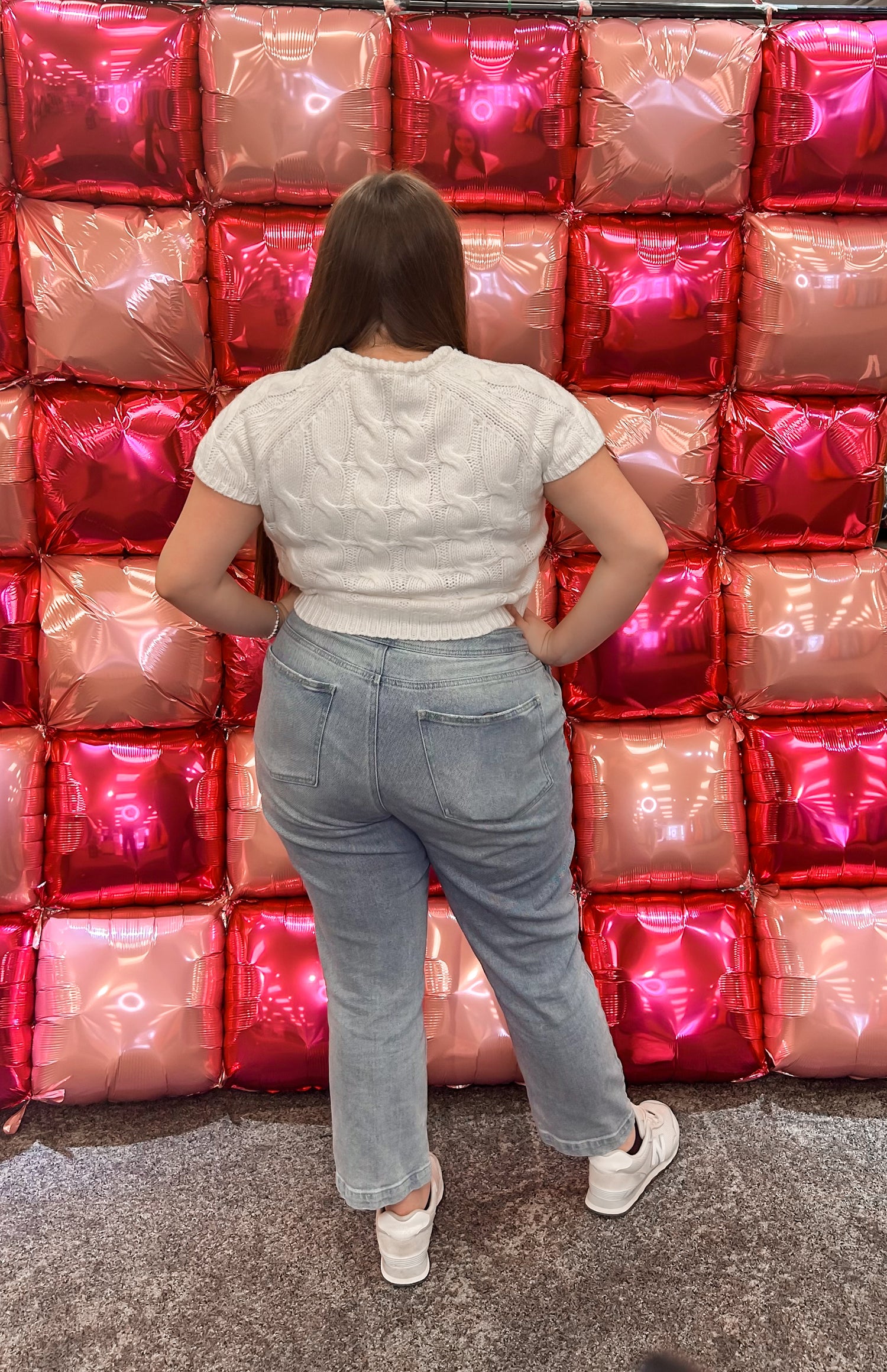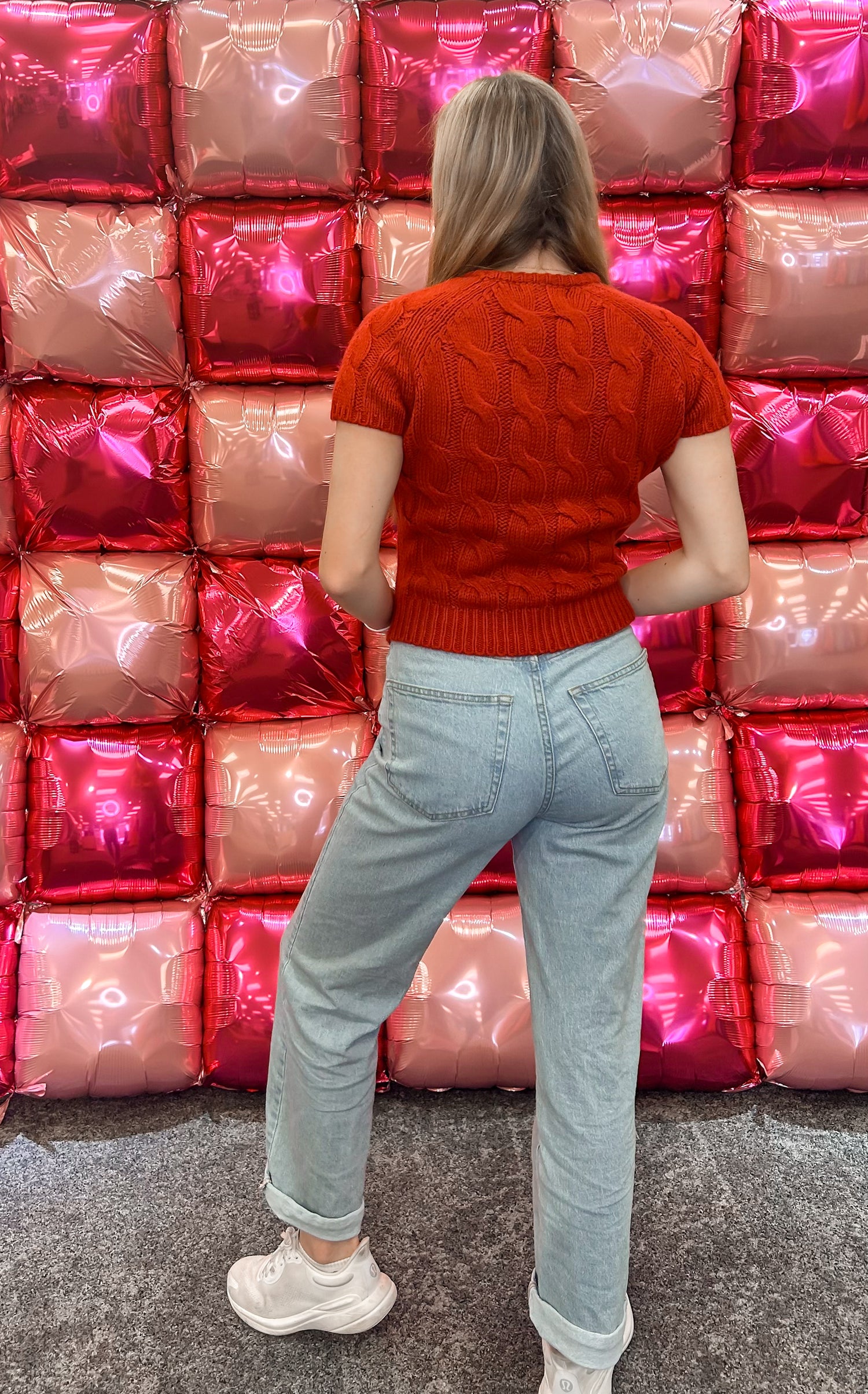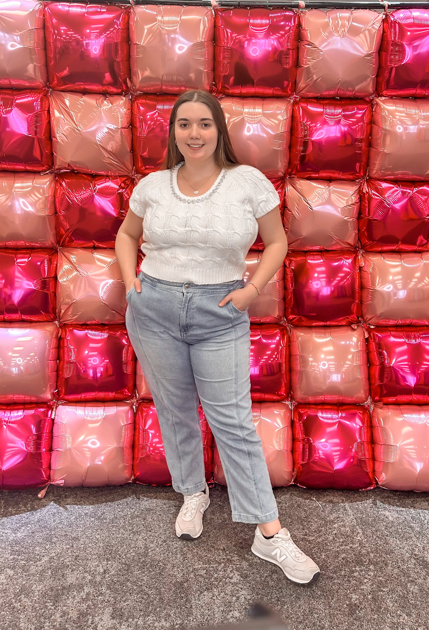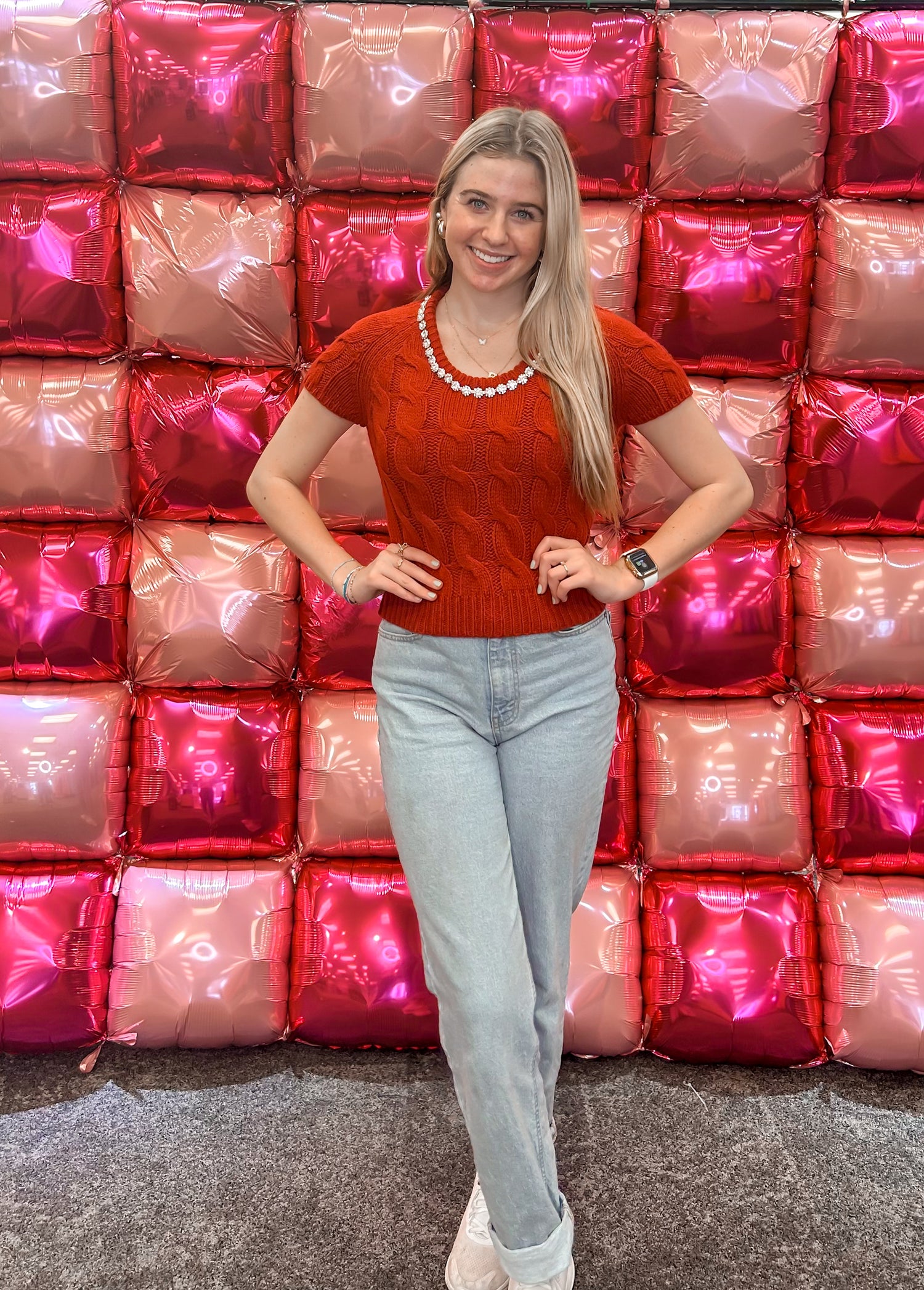 The Alexis Sweater Blouse exudes sophistication with its short sleeve design and studded trim around the neckline. Available in both white and red, this luxurious blouse is the perfect addition to any fashionable wardrobe. Elevate your style with the elegance of the Alexis Sweater Blouse.