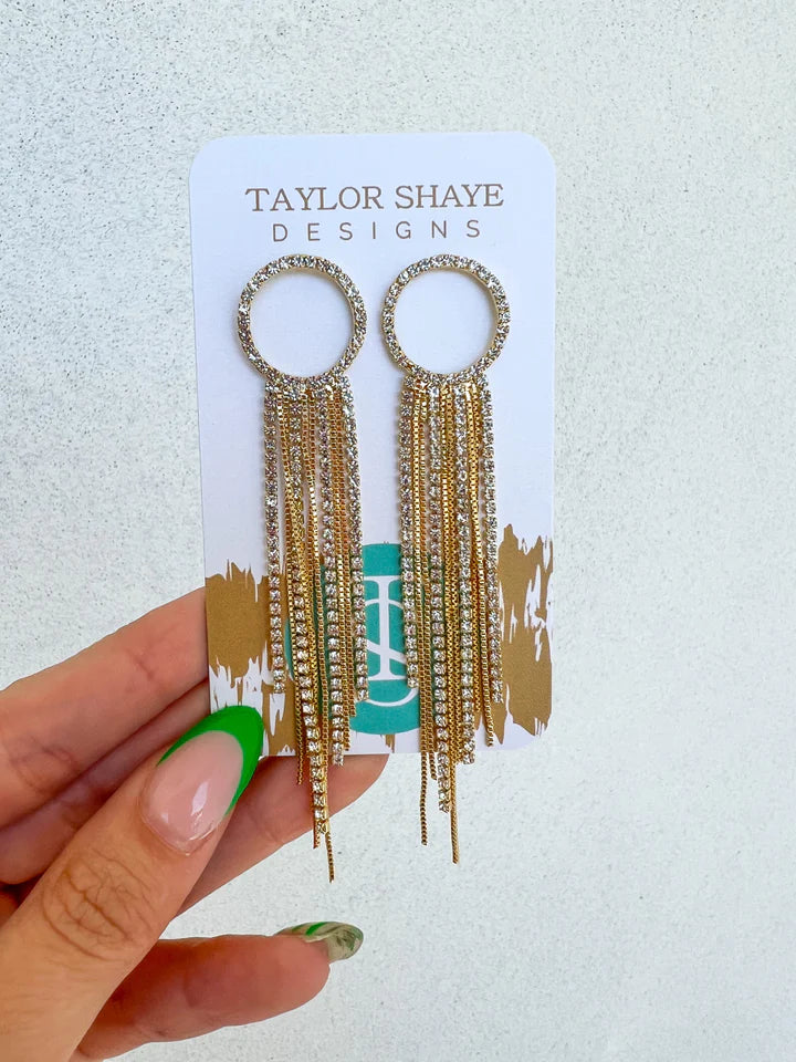 Angelle Drops are a beautiful and elegant addition to any look. Crafted with a small diamond hoop and diamond and gold fringe, these lightweight earrings are the perfect statement piece without the weight. Add some elegant sparkle and shine with Angelle Drops.
