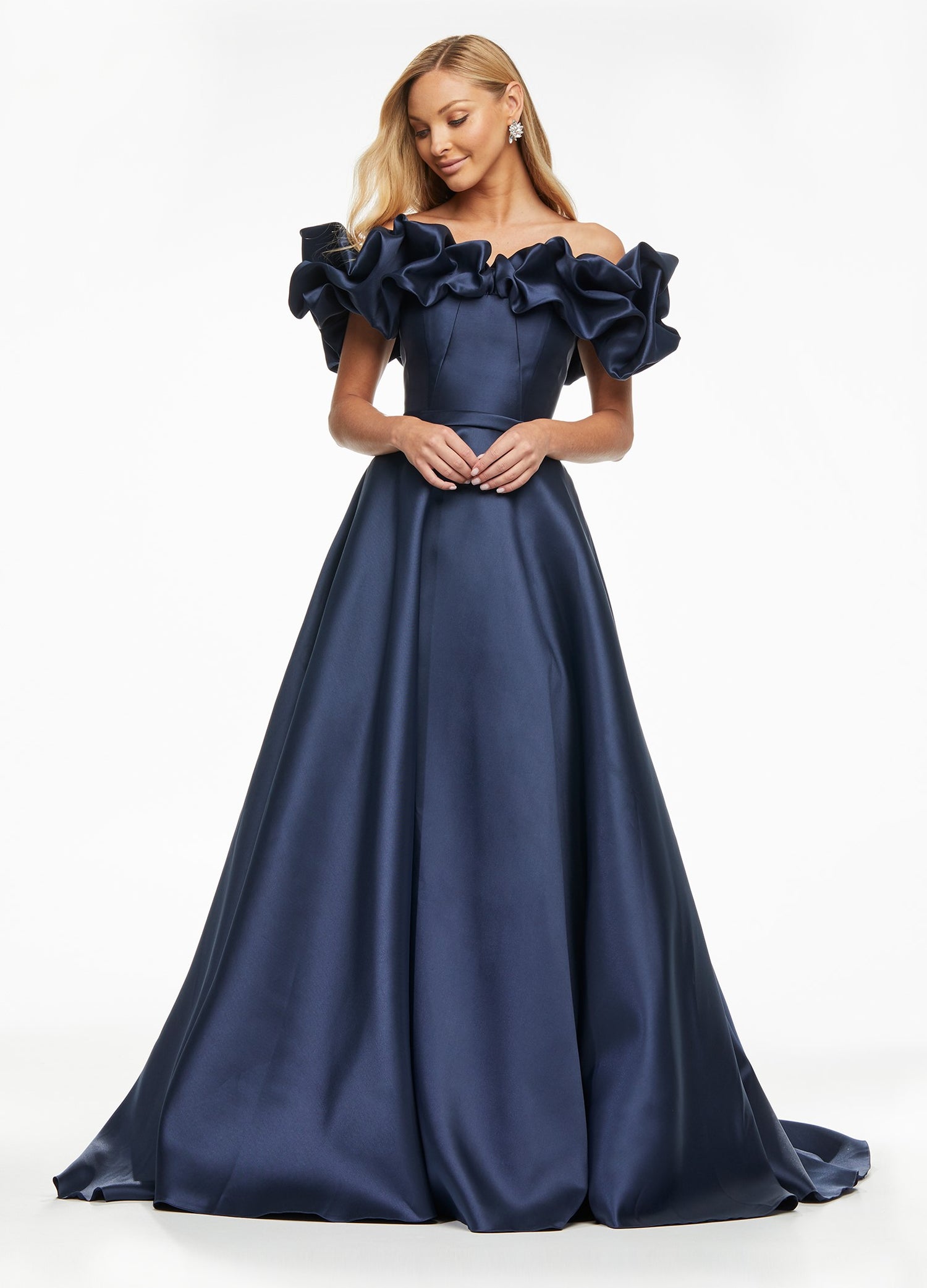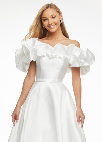Feel like royalty in this gorgeous ASHLEY Lauren 11096 gown! Perfect for a glamorous special occasion, the off-the-shoulder oversized ruffle adds an undeniable touch of elegance while the dramatic ball gown skirt will surely turn heads. Look stunning and be the focus of attention!
