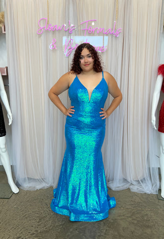 Make a stunning entrance in this Ashley Lauren 11108 Spaghetti Strap Sequin Gown. The low back mermaid style creates a flattering silhouette, perfect for formal occasions. A combination of sequin fabric and spaghetti straps make this a timeless piece that's sure to turn heads.