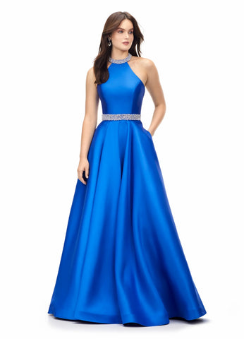 Elegant and enchanting, the ASHLEYlauren 11230 gown is a must-have for your next event. The crystal and pearl encrusted halter neckline adds a touch of sparkle and sophistication. The a-line silhouette and ball gown skirt will make you feel like a princess. Truly the perfect choice for any special occasion.