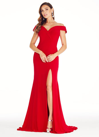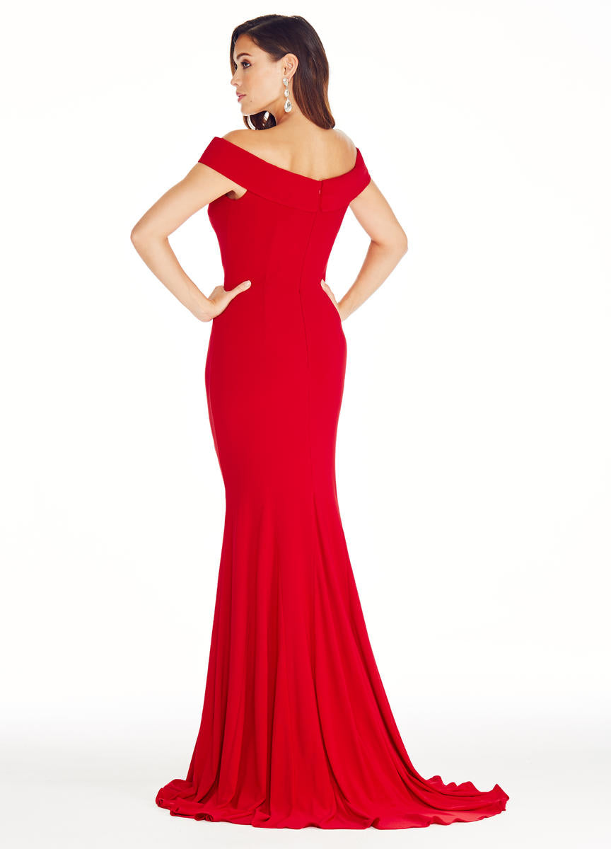 ASHLEYlauren 1316 is a gorgeous long formal dress, featuring an off-the-shoulder design with a stylish slit. The perfect all-occasion look, this timeless piece is sure to make a lasting impression.