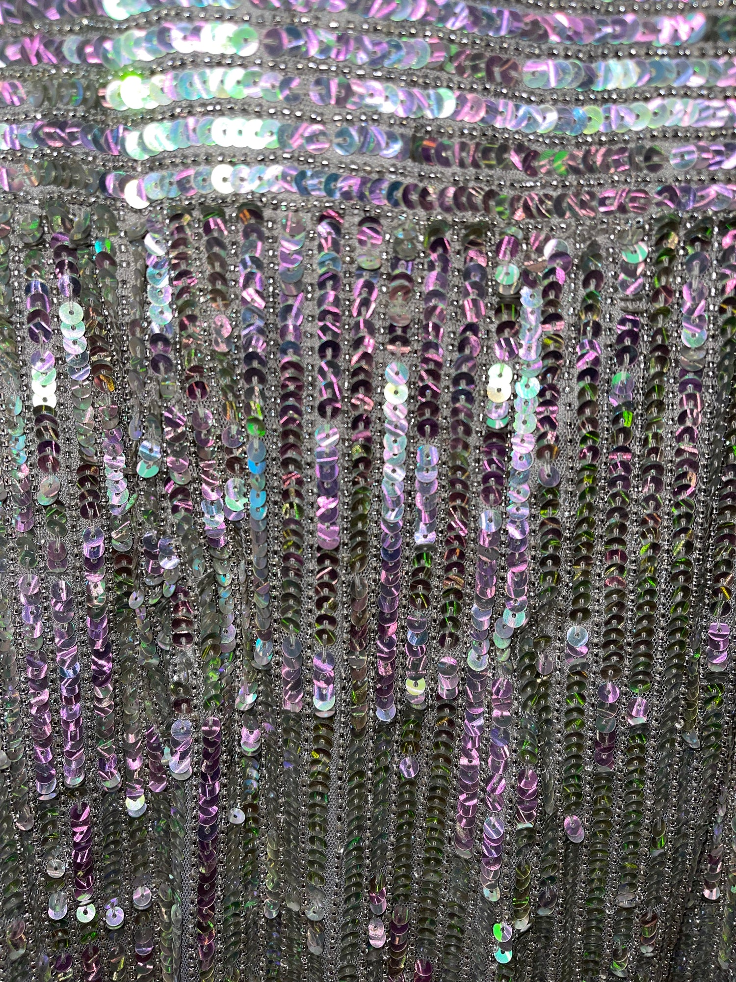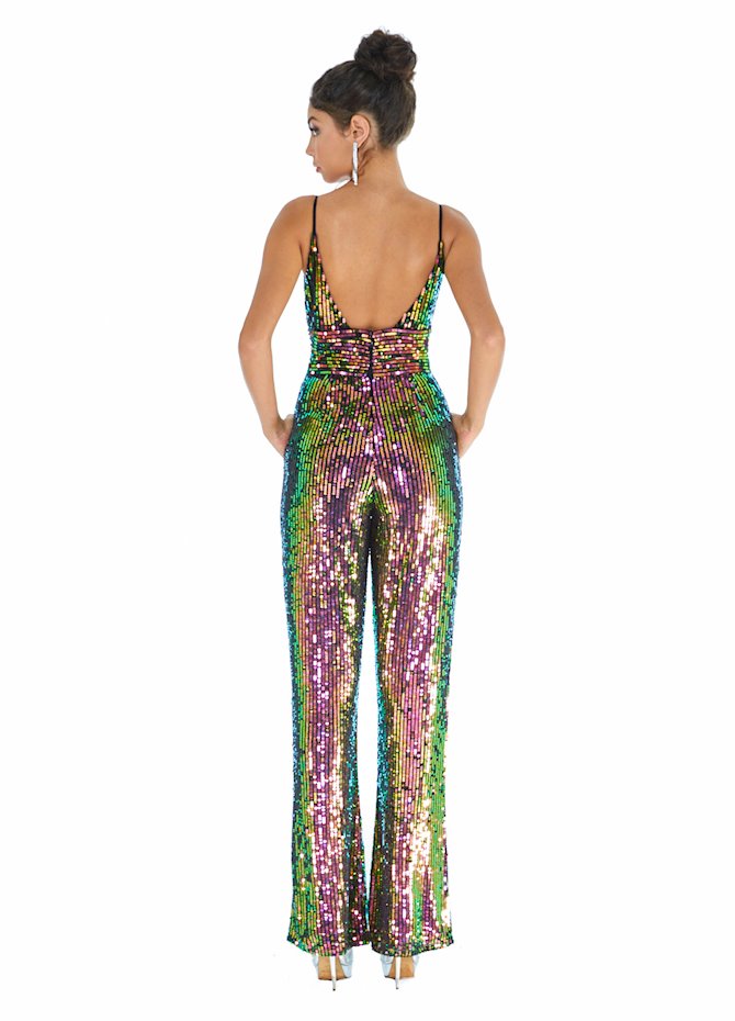 Feel dazzling in the ASHLEYlauren 1726 jumpsuit! Fully beaded, this show-stopping ensemble features a V-Neckline and vertical beading on the pants and horizontal beading on the waist. Shine the night away in glamorous style!
