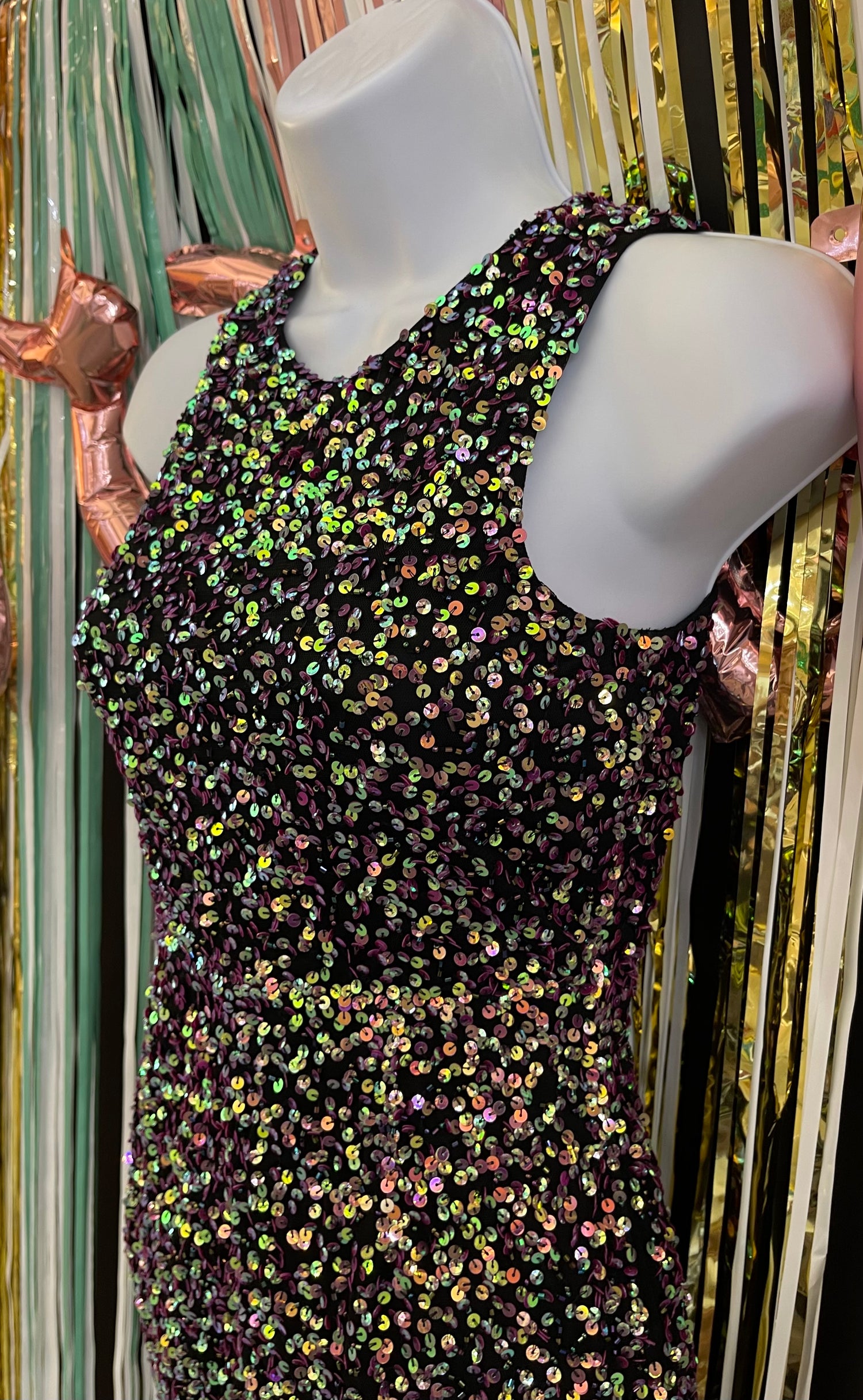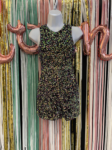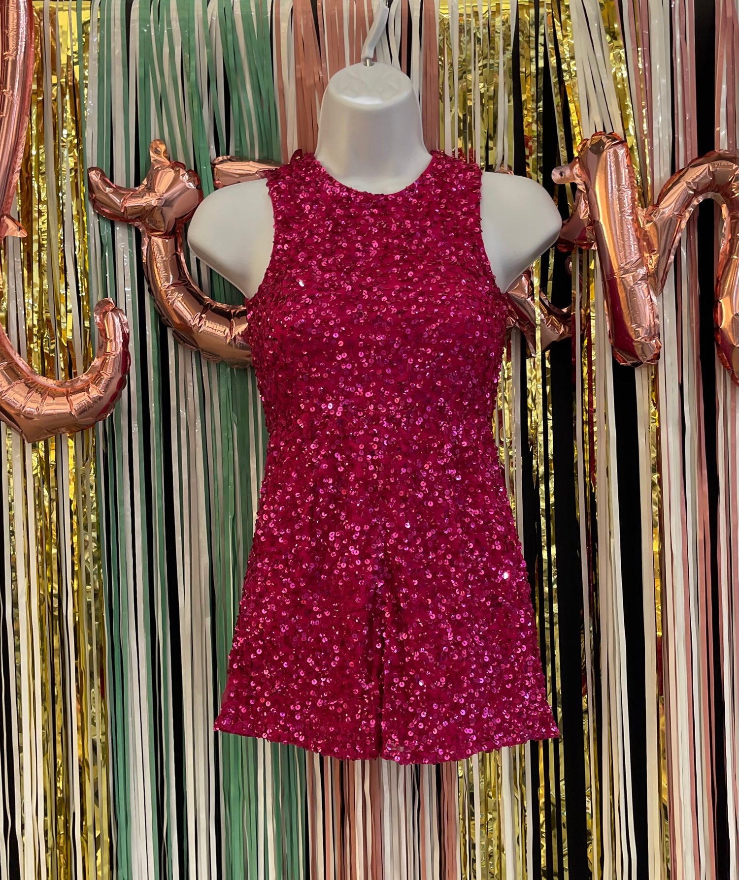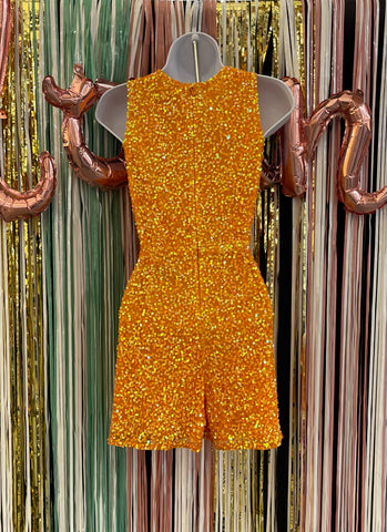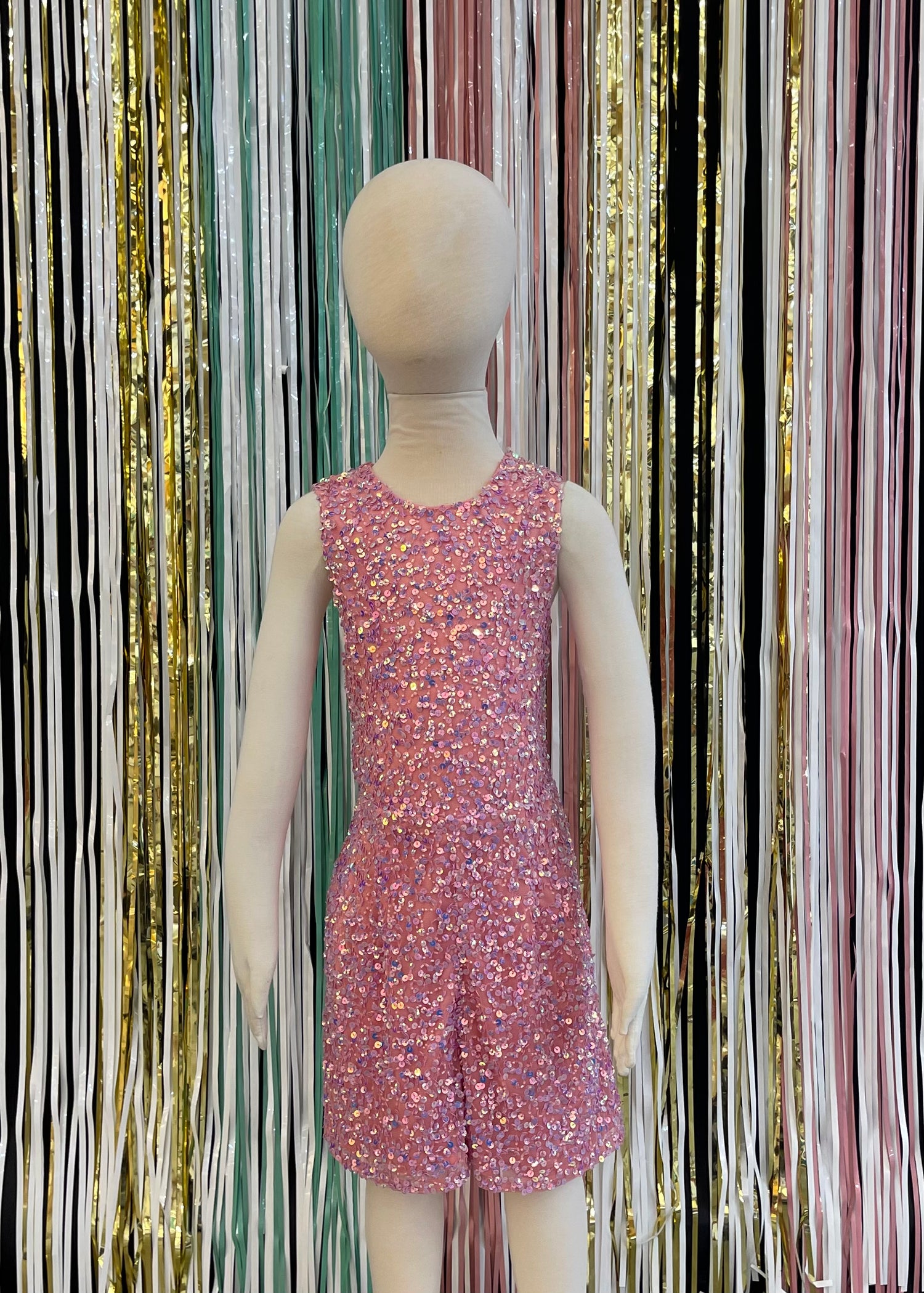 Introducing the ASHLEYlauren 31082, a children's formal romper with an eye-catching fully-sequined design. It's the perfect way to dress up any special occasion. The sleek and stylish design will make your little one sparkle and shine. The overskirt is sold separately.