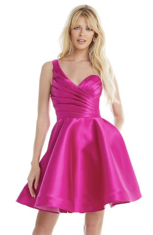 The ASHLEYlauren 4377 is perfect for a night out. This elegant one-shoulder cocktail dress has a ruched bustier and A-line skirt, creating a flattering silhouette that is sure to turn heads. Perfect for special occasions, this dress will have you looking sophisticated and stylish.