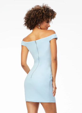 This ASHLEYlauren dress is sure to turn heads with its unique fitted silhouette and industrial zipper back. Crafted from scuba material for a sleek fit, this off-the-shoulder cocktail dress is the perfect blend of style and sophistication. Are you ready to make a statement?