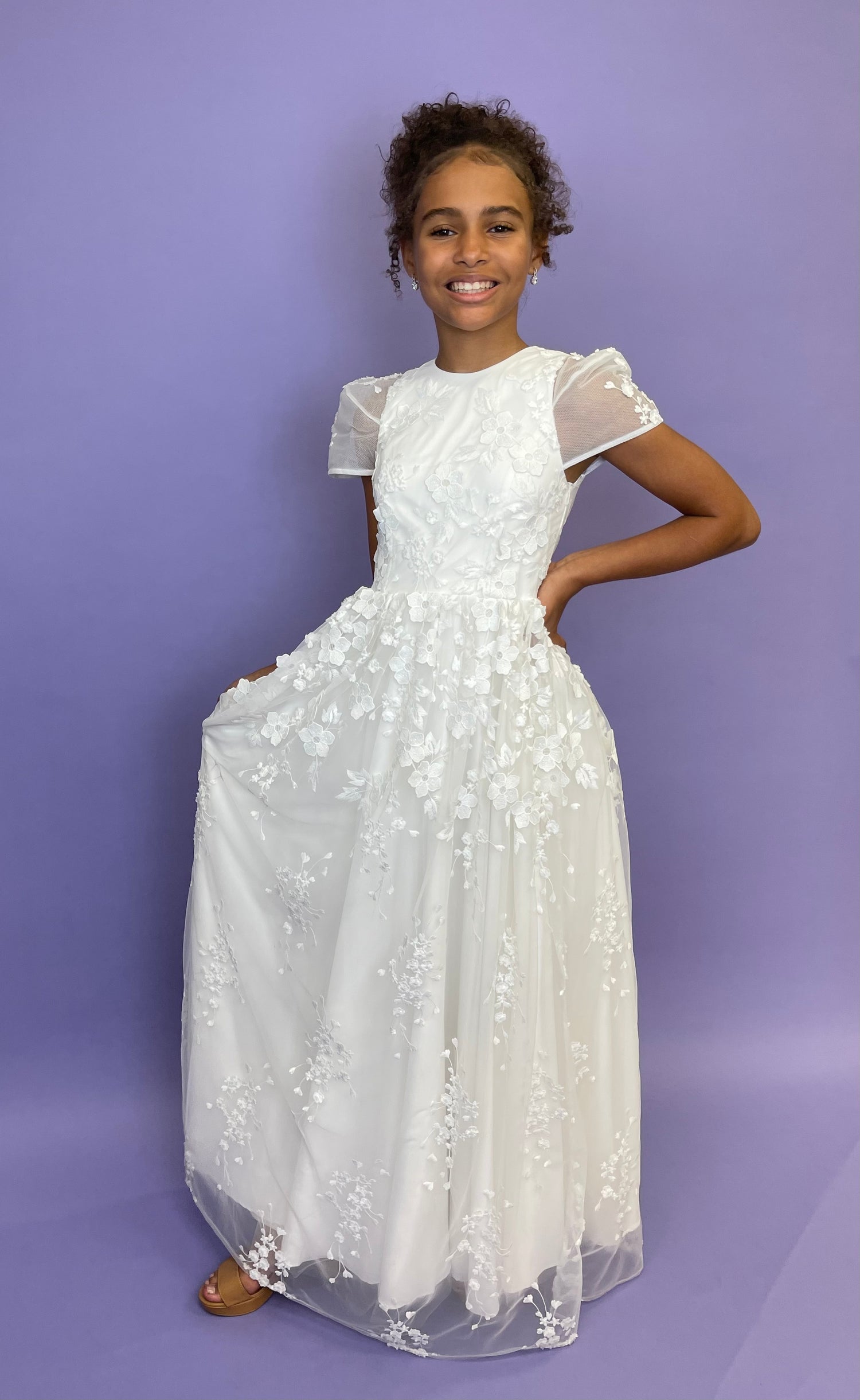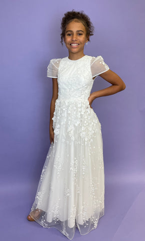 This ballgown is the perfect choice for any special occasion. The white tulle skirt has a soft, fun feel while adding to its girly style. The lace detail gives it that extra bit of luxury, making this the perfect dress for a growing princess!