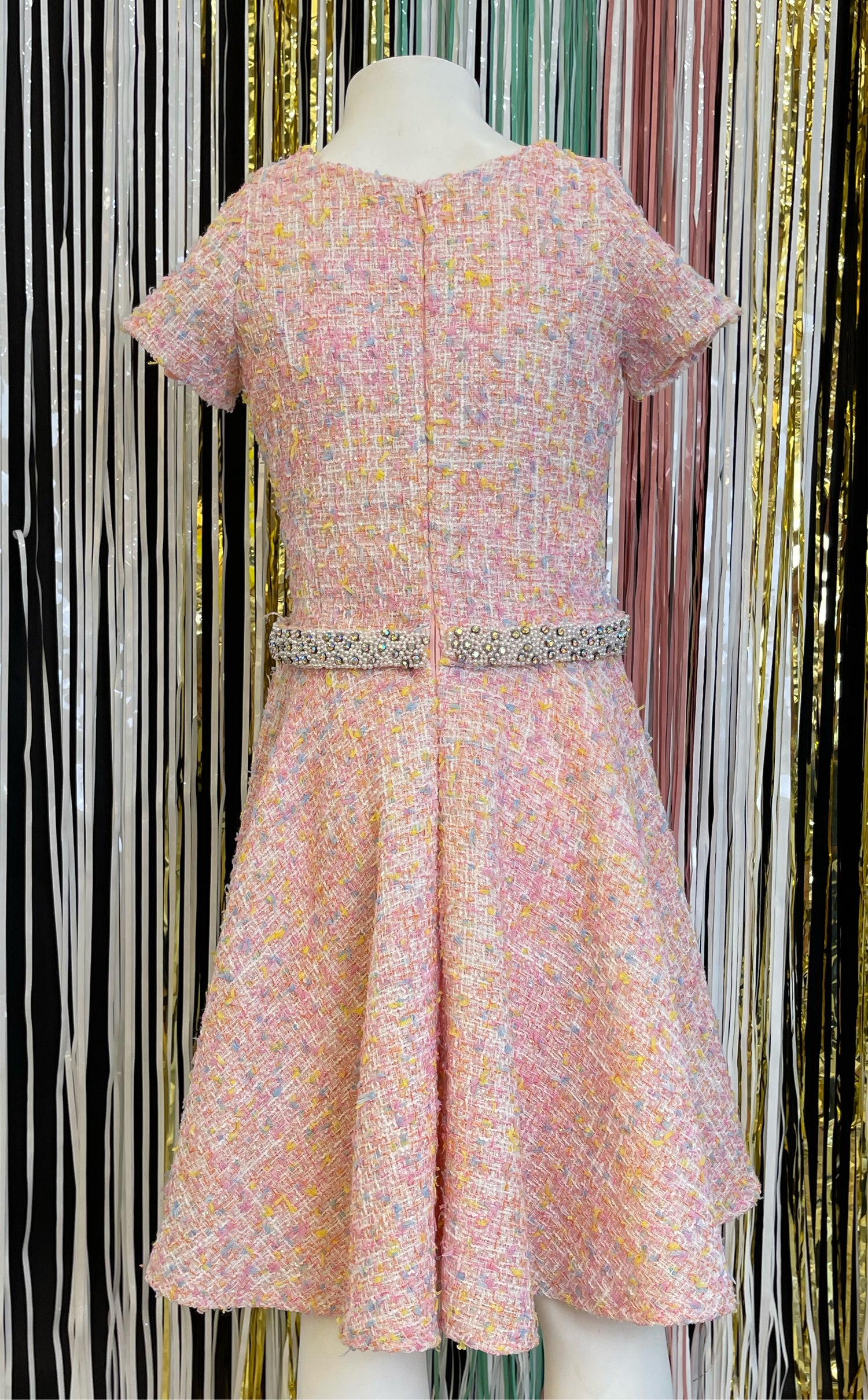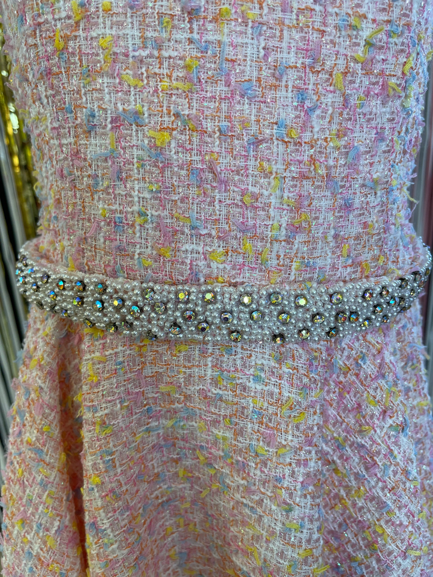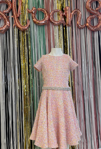 Get your little ones dressed to impress with the ASHLEYlauren 80202 children's short formal. Made from durable tweed material, this dress is both stylish and practical. The beaded waistline adds a touch of elegance, making your child stand out in any event. Perfect for weddings, recitals, or any special occasion.
