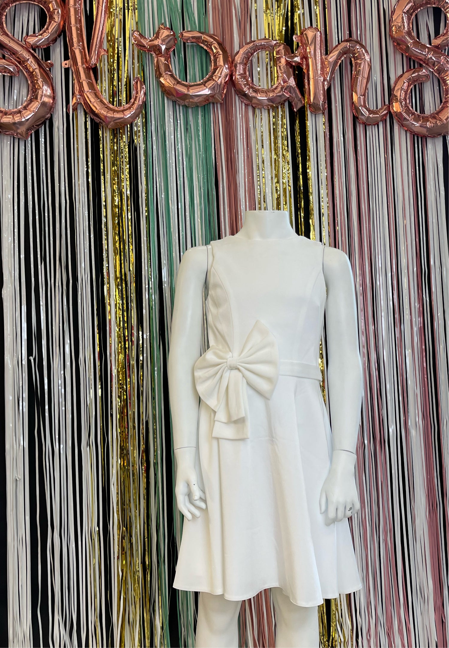 Elevate your child's style with the ASHLEYlauren 8040. This short dress features a delicate bow on the waistline, adding a touch of charm and elegance. Perfect for any occasion, your little one will feel comfortable and fashionable in this dress.