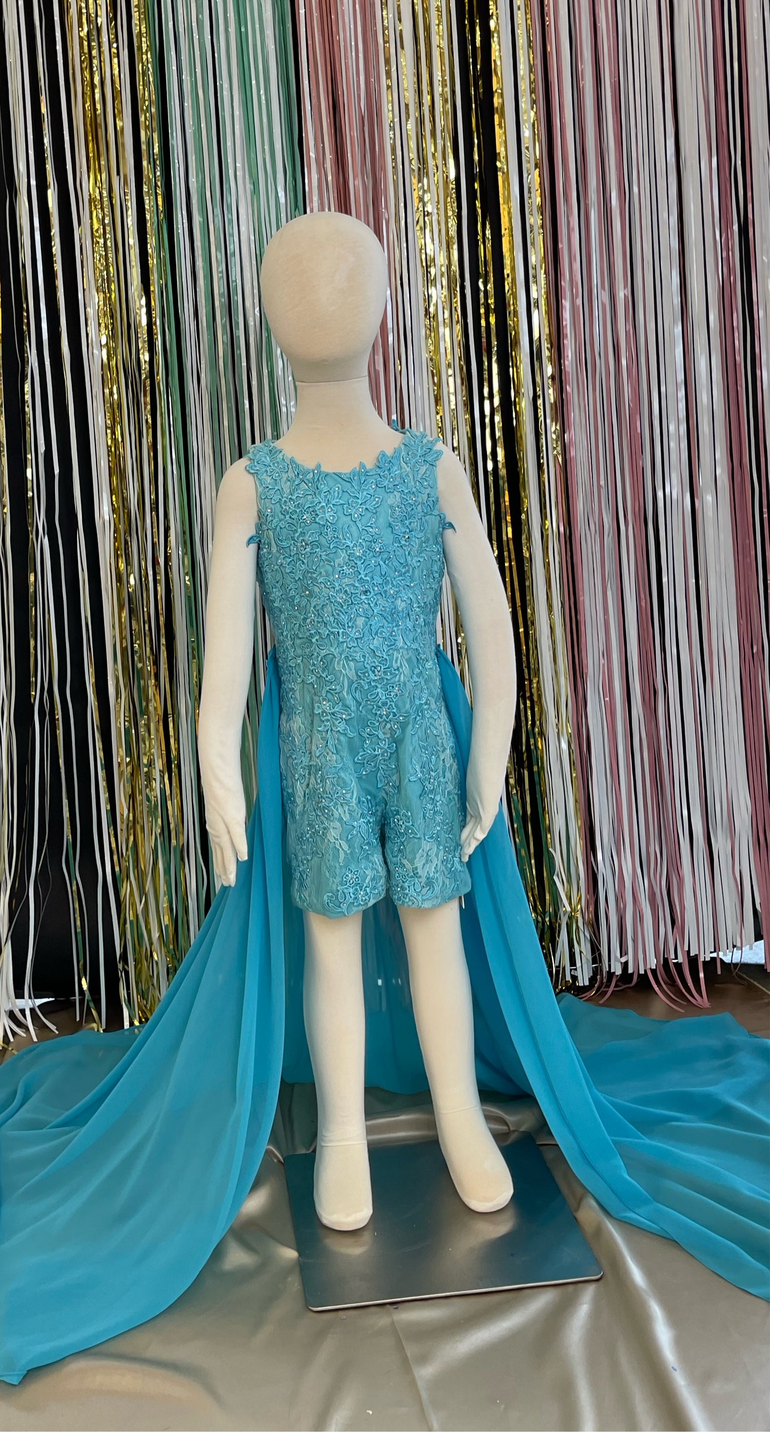 Children's romper with a detachable train.