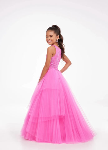 Turn heads this season in the stunning ASHLEYlauren K8105 ball gown! Embroidered lace applique graces the bustier and pleated tulle provides texture to create a look as timeless as it is beautiful. Ready to take the spotlight?