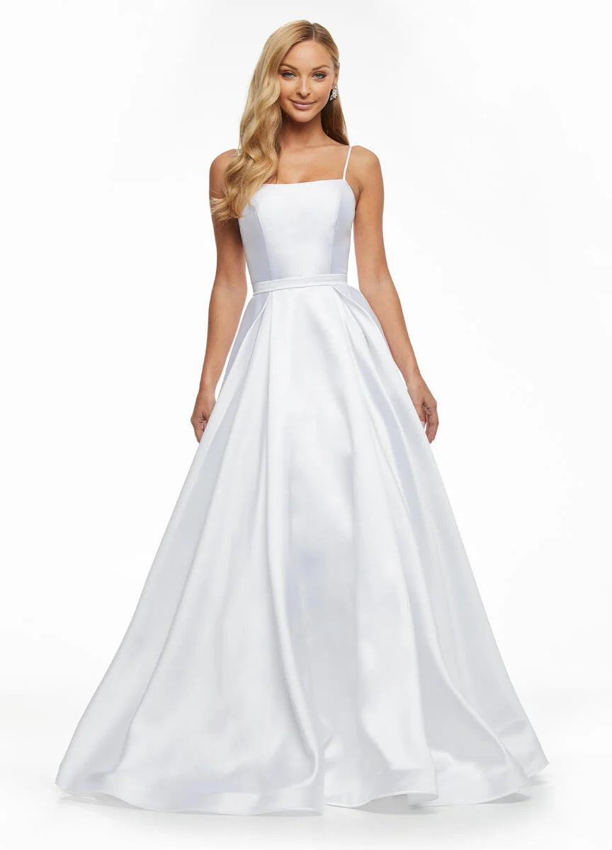 Channel elegance and sophistication with the AshleyLauren 11095 gown. Crafted from luxurious mikado fabric, this ball gown features delicate spaghetti straps and a straight neckline. Perfect for weddings, proms, or pageants, this dress will make you feel like a true star with its stunning silhouette. Impress and stand out with this premium piece.