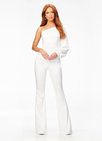 Make a bold fashion statement with the ASHLEYlauren 11168 one-shoulder jumpsuit. This stunning piece features a balloon sleeve and thigh-high slit for added sophistication and a unique look. Crafted from luxurious fabric, the jumpsuit is designed to fit comfortably and make you look your best.
