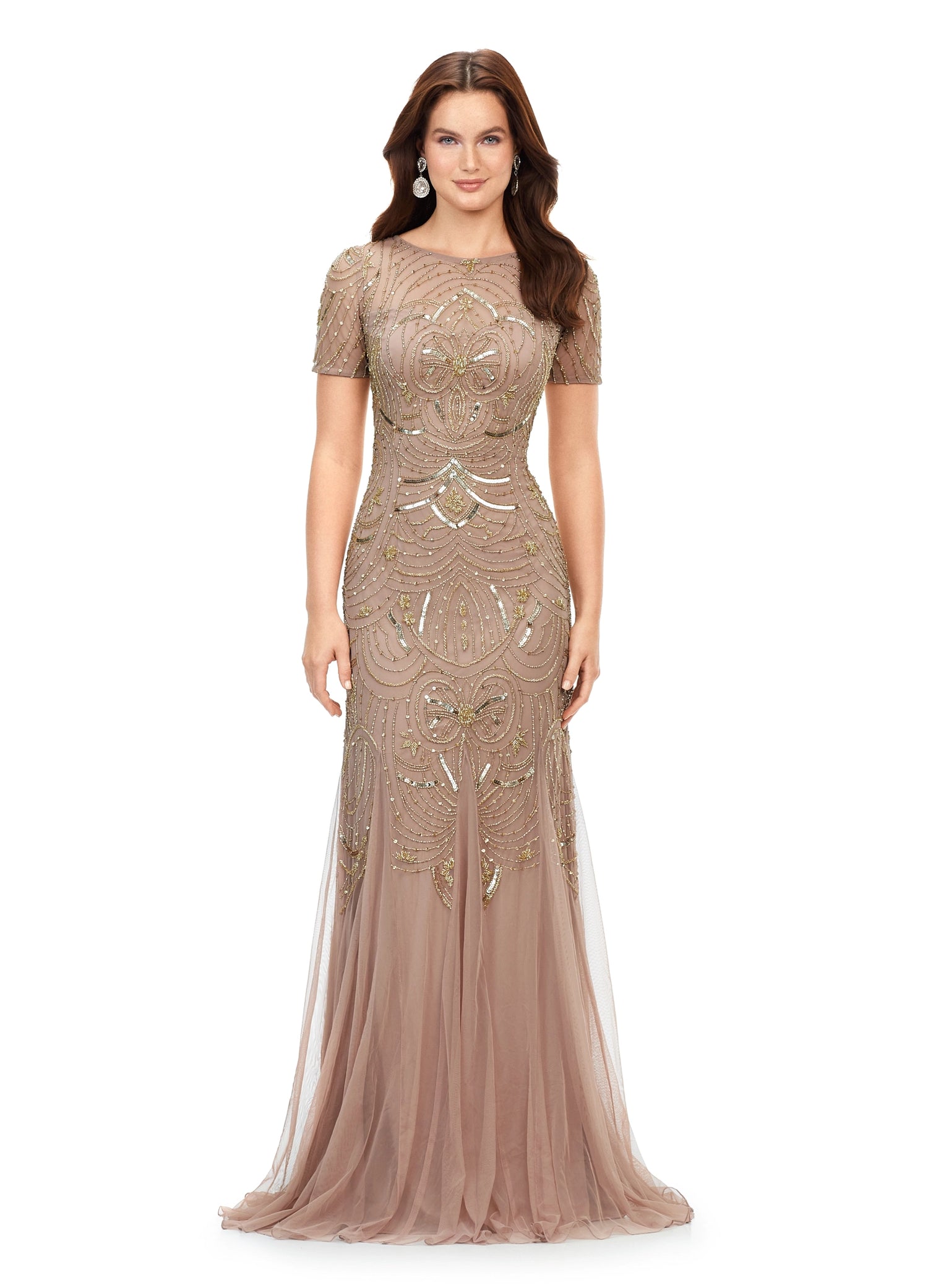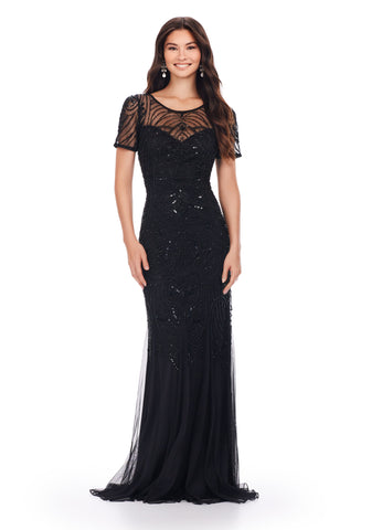 Step into the spotlight in the ASHLEYlauren 11215 gown! The illusion sweetheart neckline and intricate sequin motifs add dazzling detail, while the godets create a flattering mermaid silhouette. Hand beaded for a fully luxurious look.
