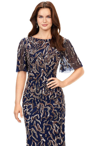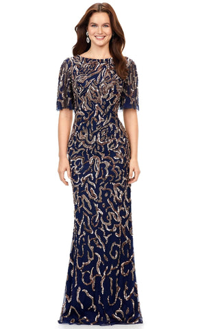 Look regal in the ASHLEYlauren 11216 long formal gown. Featuring a luxurious sequin embellishment and flowy short sleeves, this dress is sure to make an impact. Perfect for special occasions, you'll feel confident and glamorous in this eye-catching design.