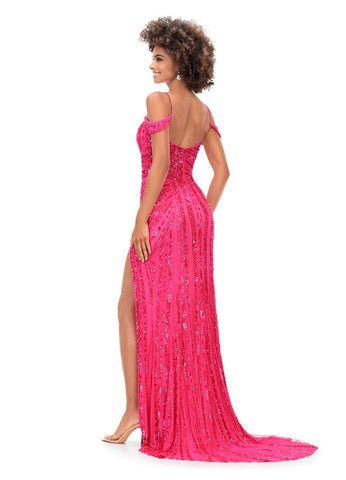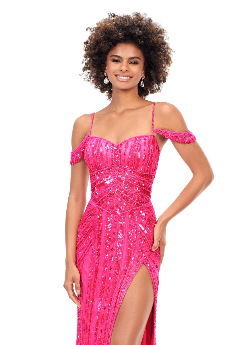 This spaghetti strap gown with sweetheart neckline is sure to dazzle at your next event. The intricate bead pattern will accent your curves. The look is complete with shoulder draping straps and a sweep train.