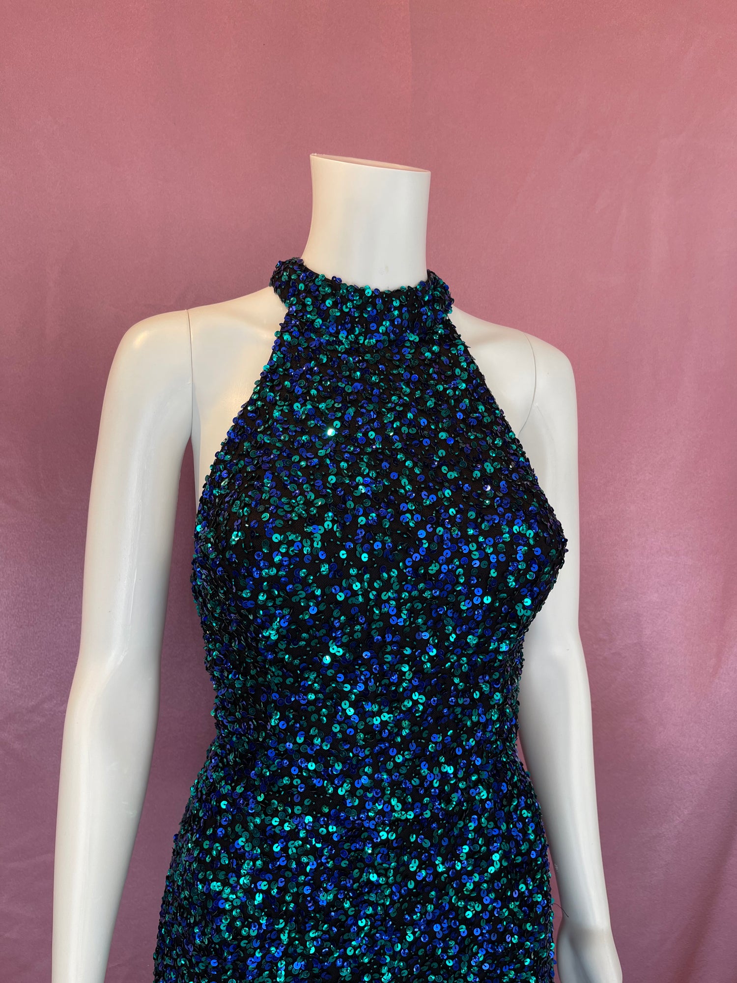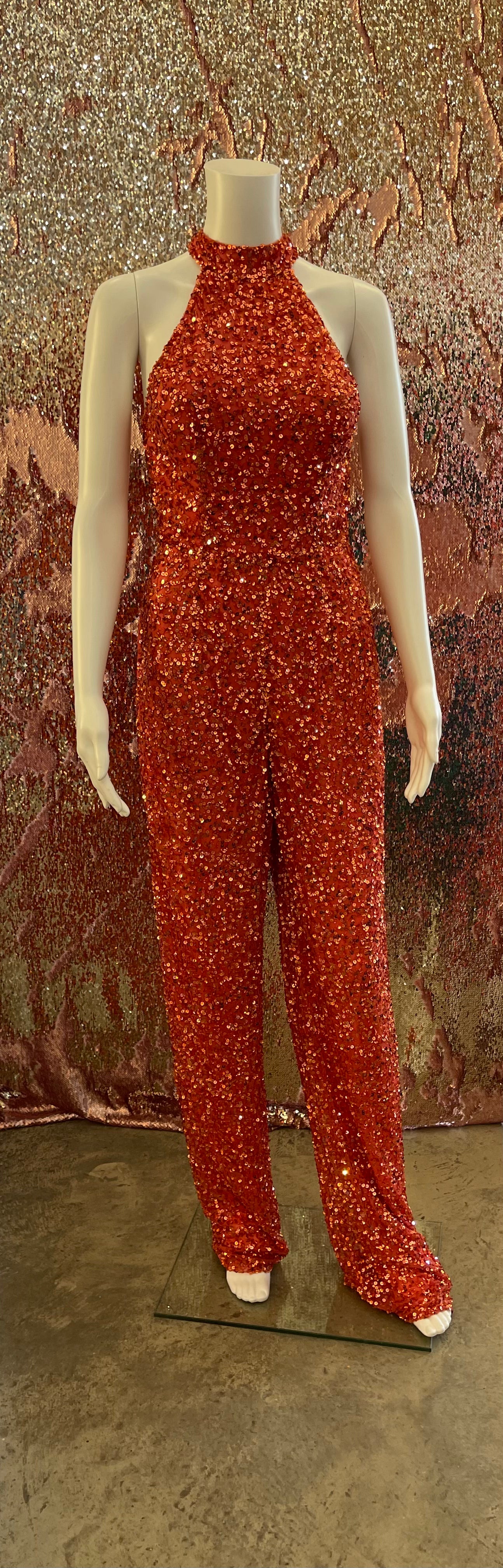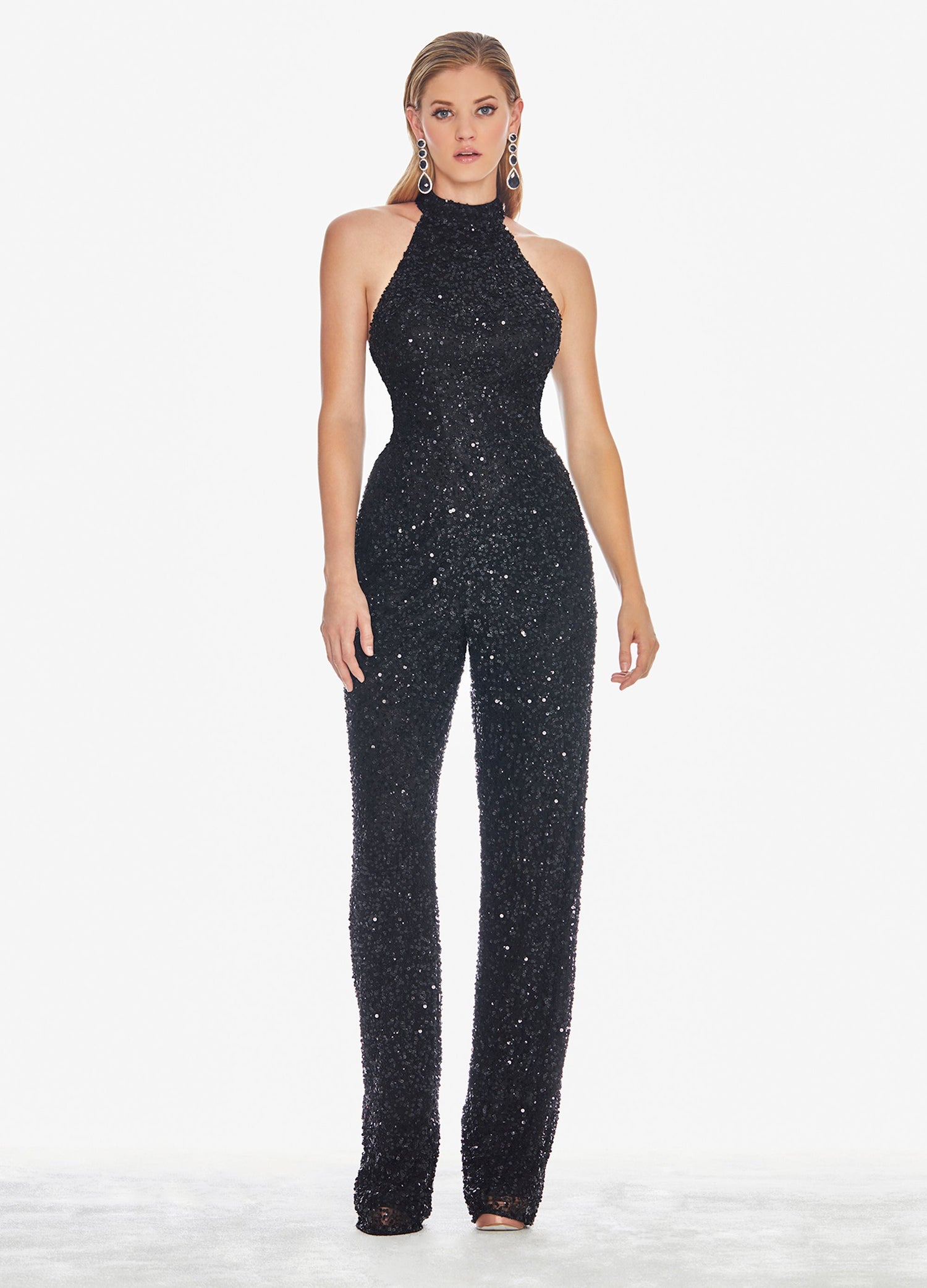 The ASHLEYlauren 1434 is an eye-catching formal jumpsuit designed for special occasions. Delicately constructed with a halter top and fully beaded on the chest and waist, this stylish jumpsuit will make you look stunning. The beading provides a shimmery, romantic finish to the classic silhouette.