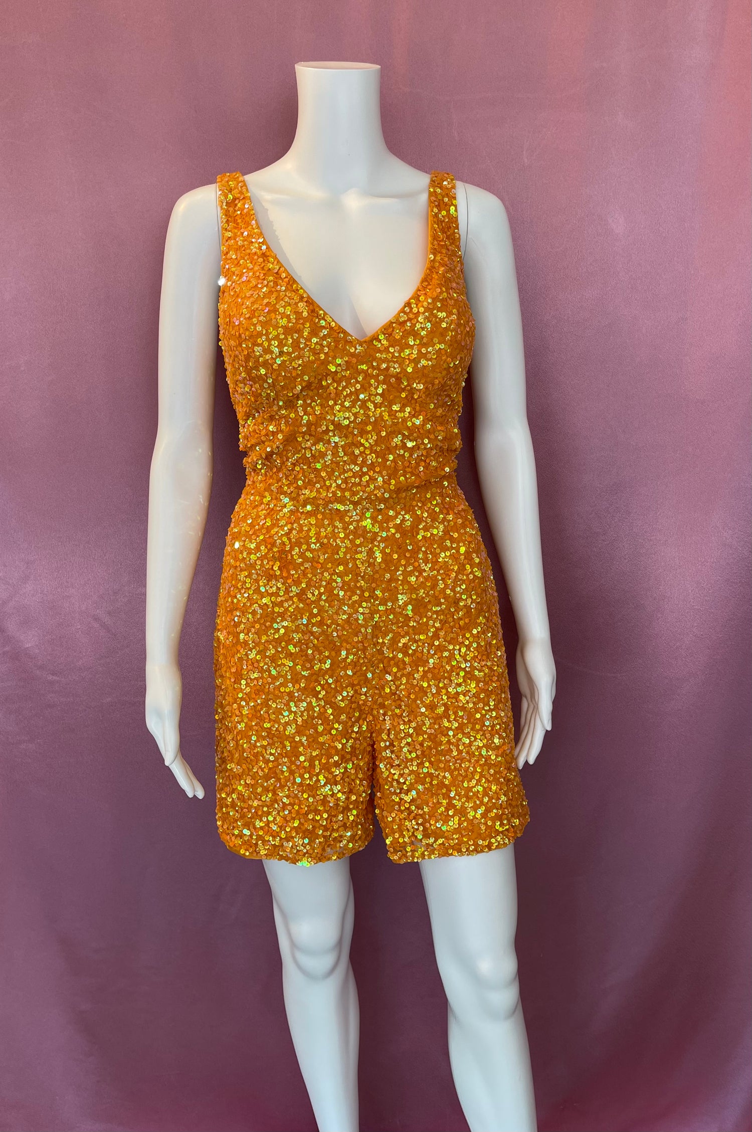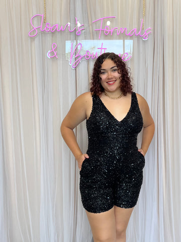 The ASHLEYlauren 4286 is a statement piece for your special occasions. This sequined formal romper is a blend of form and functionality, featuring a v neckline, pockets for convenience, and eye-catching statement sequins. Perfect for dancing the night away!