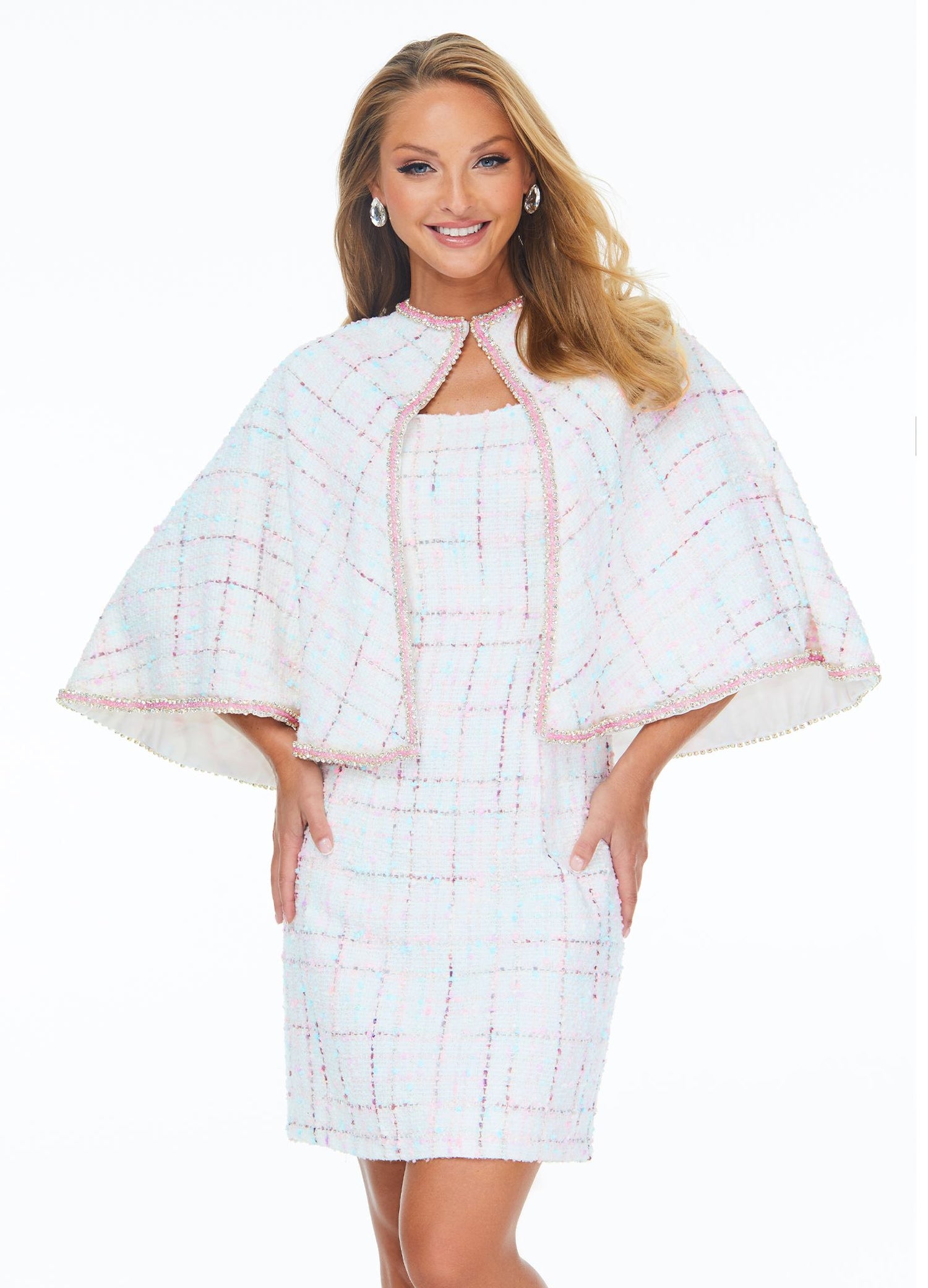 Look and feel confident in the ASHLEYlauren 4430! Made with tweed material, this interview-style cocktail dress features a cape-style jacket perfect for any occasion. Experience the elegance and sophistication of this dress while making a statement at your next event!