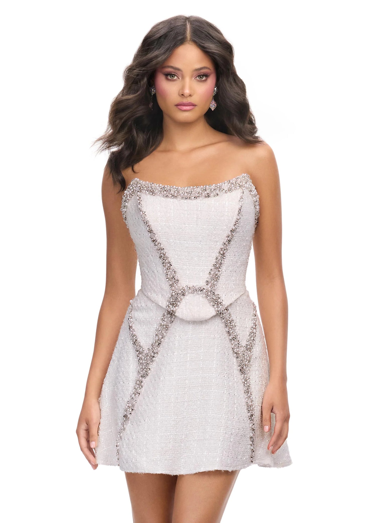 This chic and fabulous two-piece tweed set is bound to turn heads! This set features a decadent neckline and gorgeous hand beaded pattern.