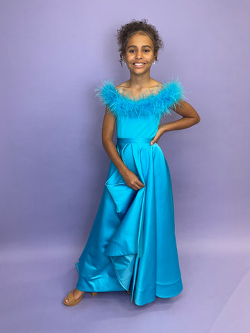 Introducing ASHLEYLauren 8012, featuring sleek satin fabric and a show-stopping zipper back. Get ready to turn heads and make a statement in this glamorous detachable overskirt - perfect for making a night to remember!