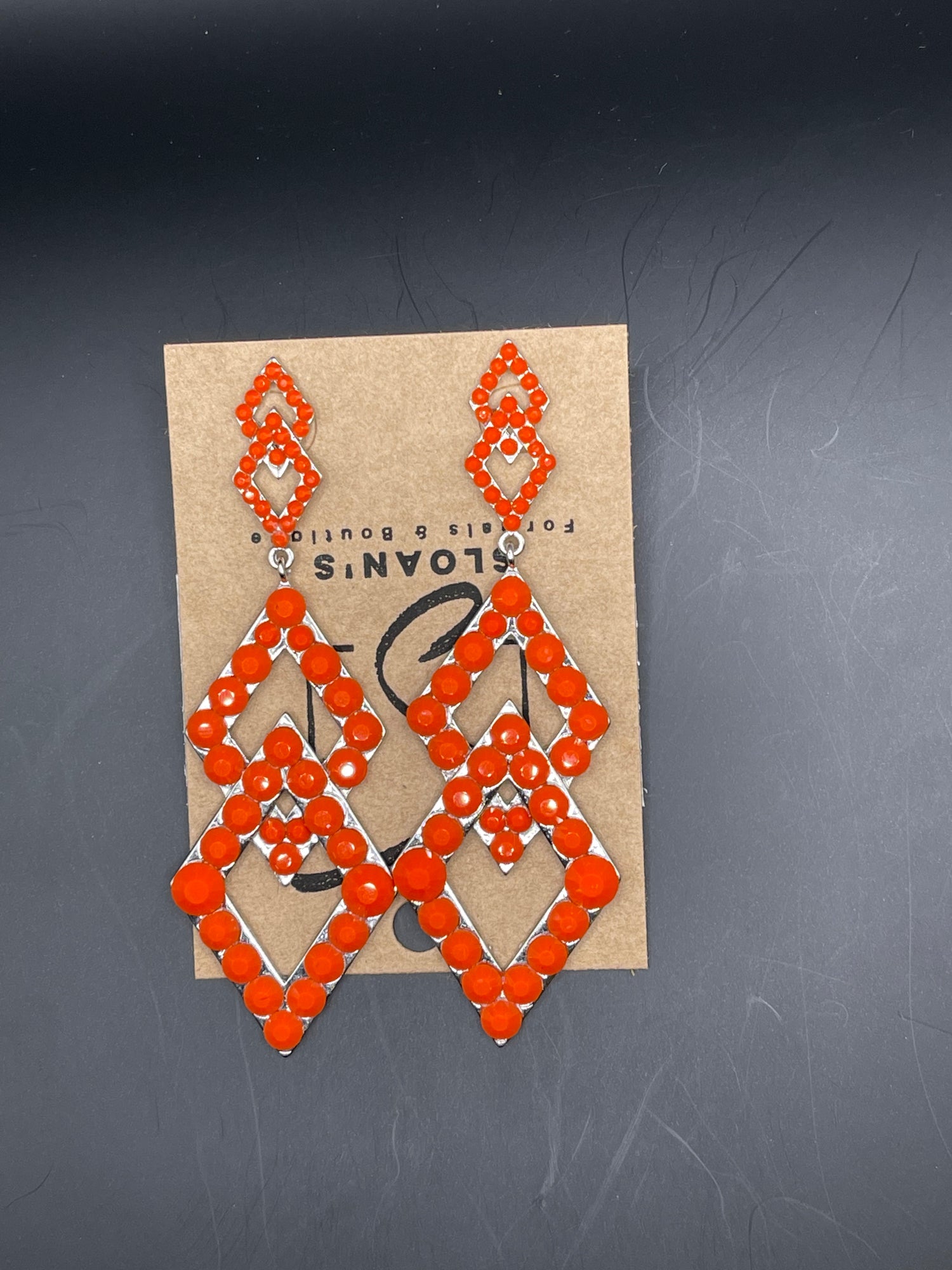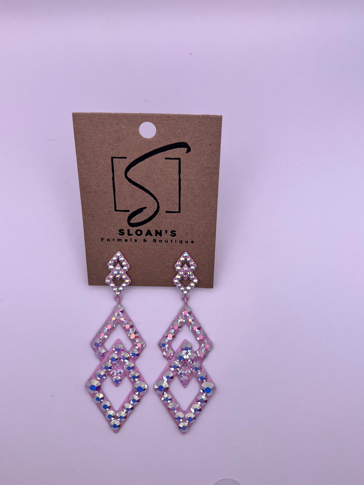 Add a bit of sparkle to your look with these fun and colorful earrings. They feature diamond shape details, and long posts for pierced ears.