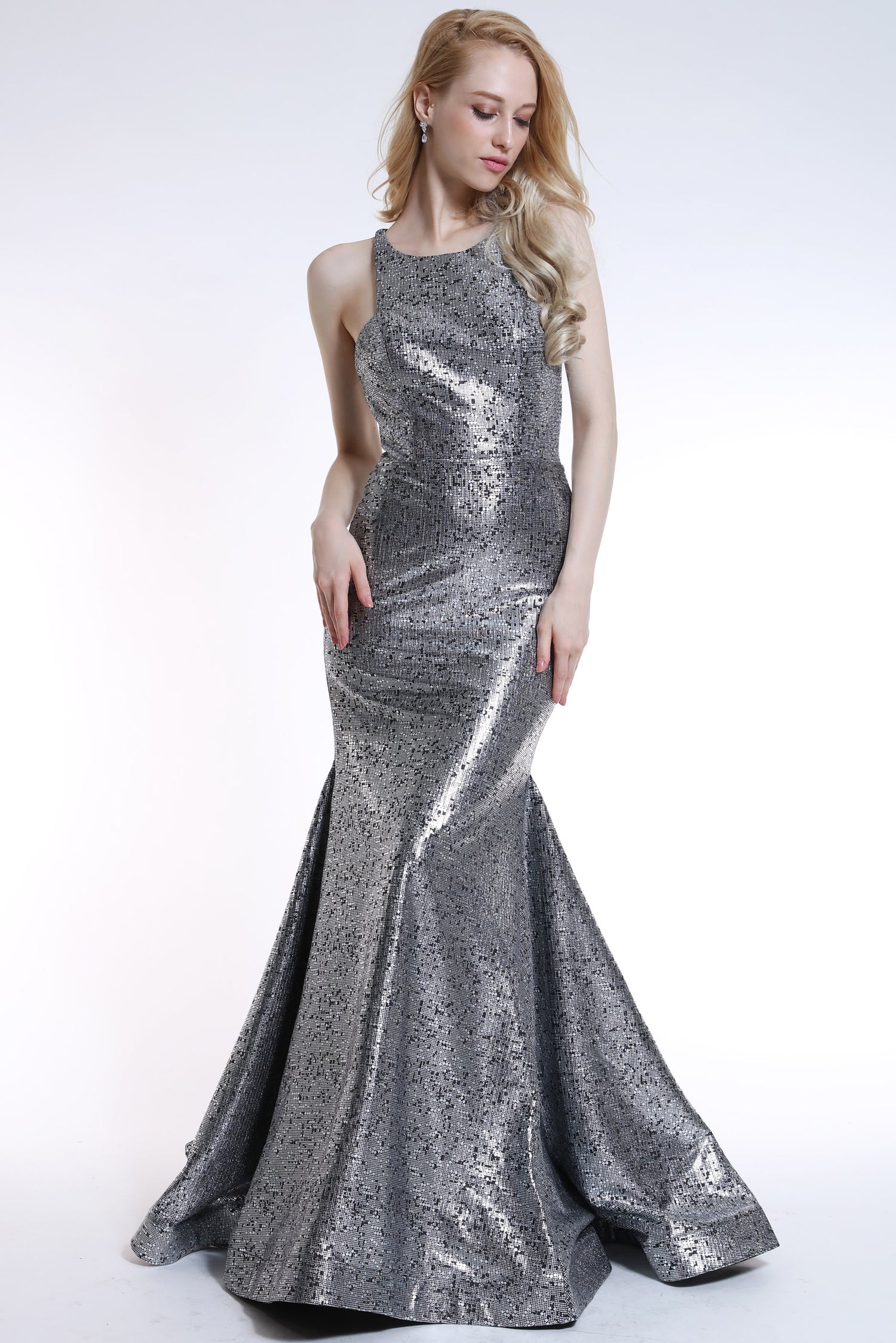 Ava Presley 35801 – Silver Sequin Mermaid Evening Gown