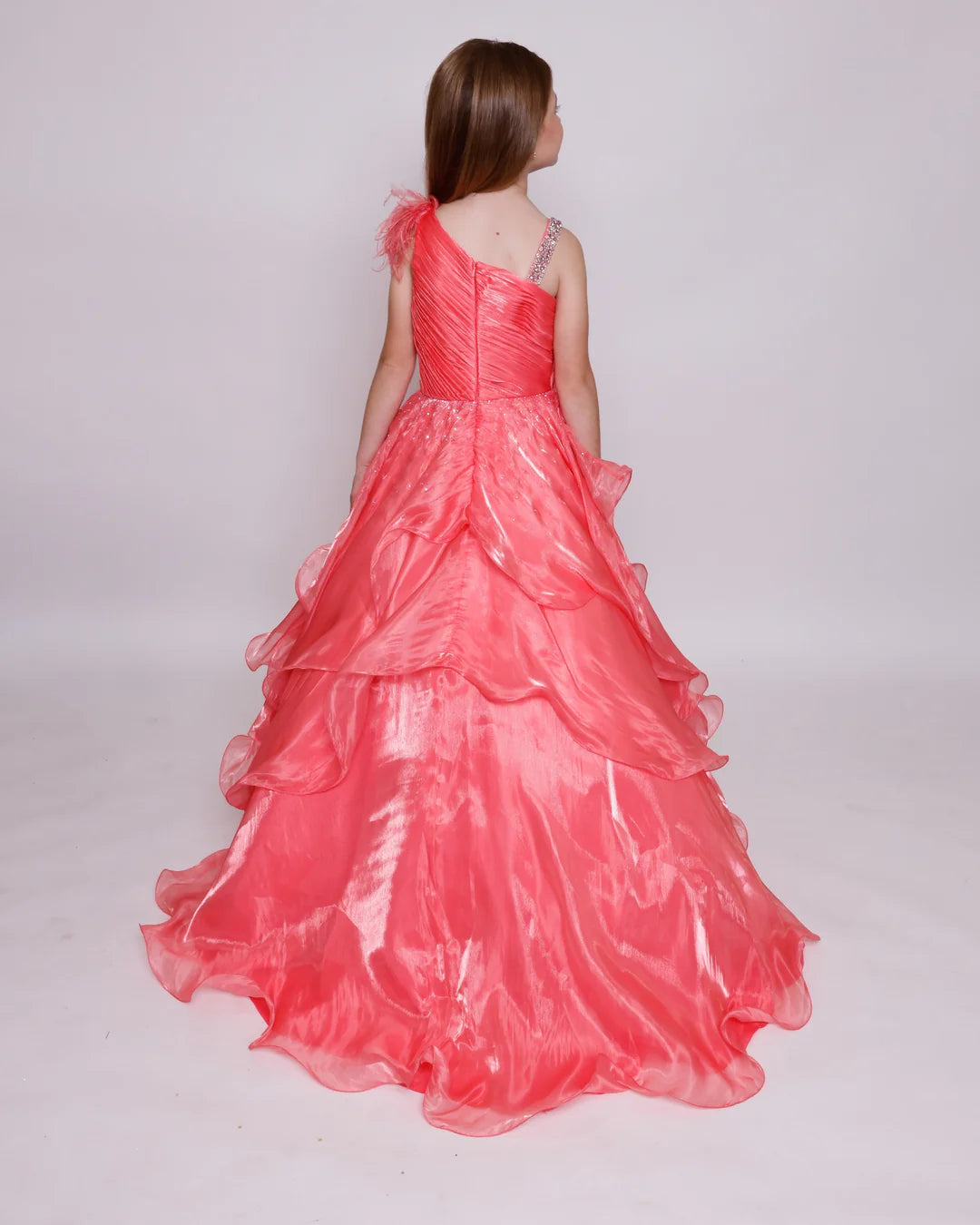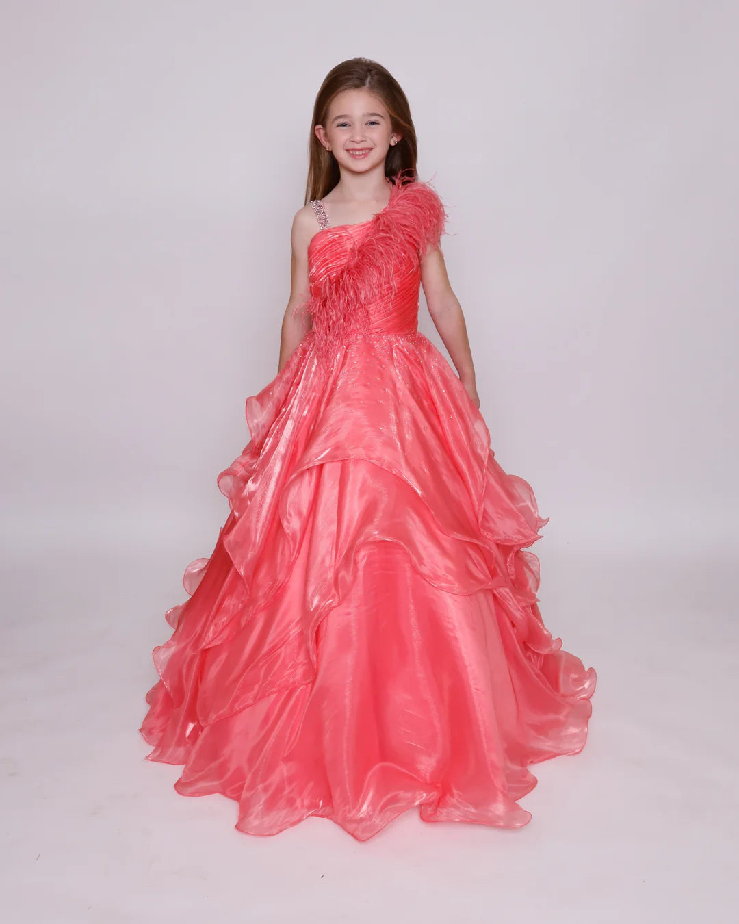 Elevate your formal style with the Ava Presley 39887 gown. Featuring a one-shoulder design, shimmering layers and a glamorous feather trim, this floor-length dress is perfect for making a grand entrance. It's the ideal choice for capturing the spotlight at any special occasion.