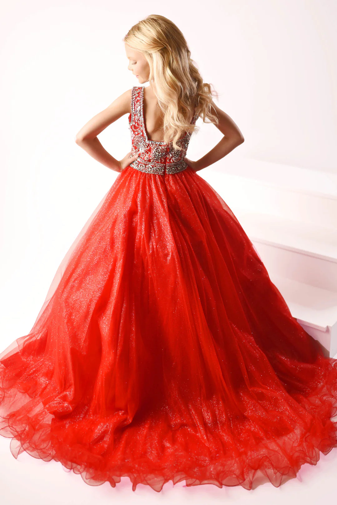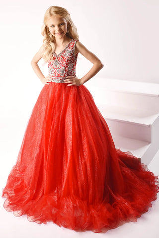 You've finally found the little girl formal you've been looking for! This kids' outfit features a stunning beaded top that will look beautiful in photos and on stage.