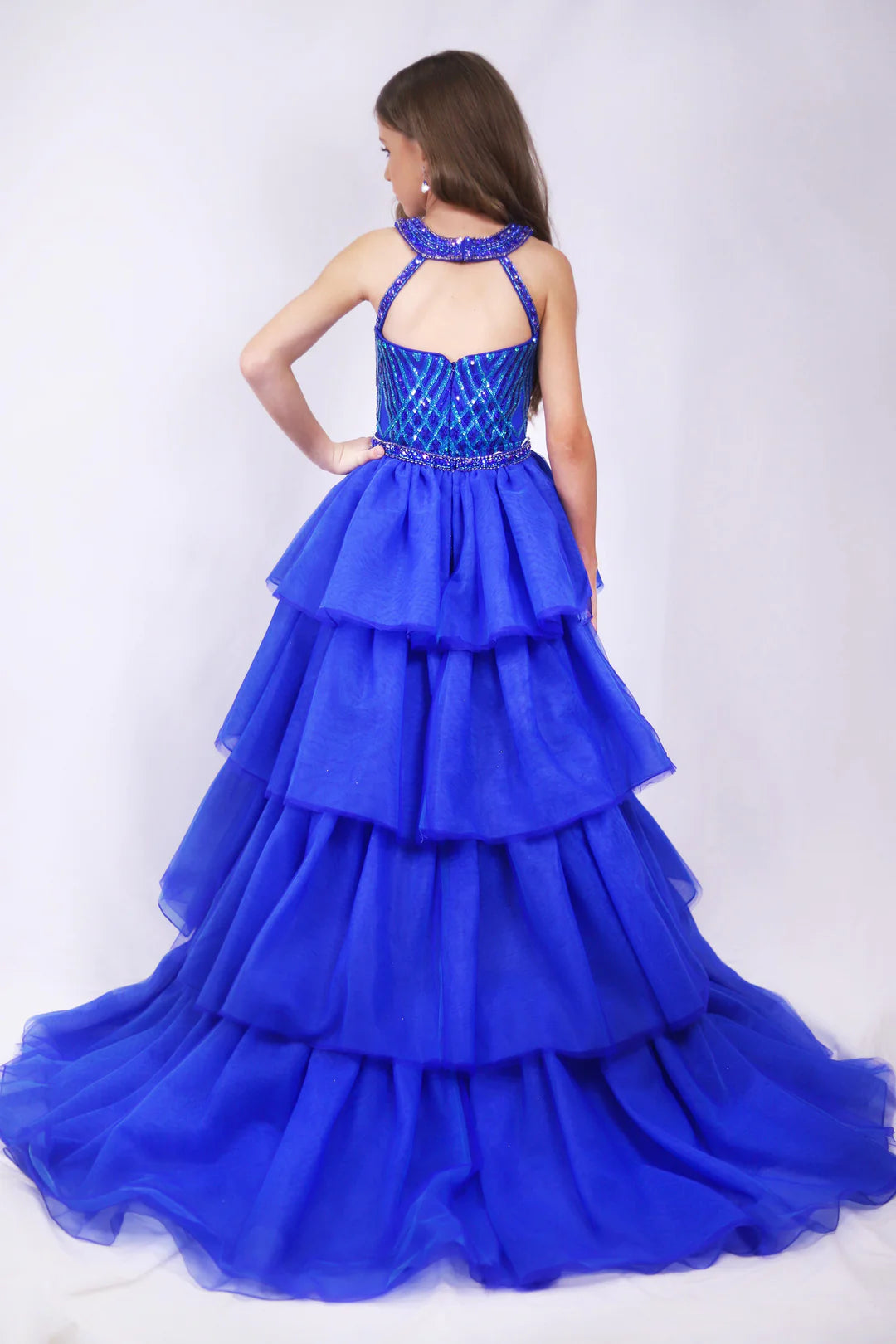 The Ava Presley K27728 jumpsuit combines formal and playful styles with its over skirt design. Perfect for pageants and formal events for kids, this jumpsuit will make a statement while keeping your little one comfortable.