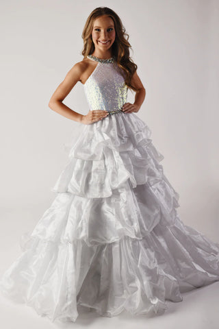 Embrace your little one's playful side with the Ava Presley K38021. This flowy kids formal piece is perfect for your child's next pageant, adding a touch of whimsy to their look. With its airy design, your child will feel comfortable and confident as they take the stage. Let their personality shine through with this unique and charming outfit.