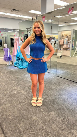 Your laid-back look just got a bold upgrade. Meet the Blue Skies Set — a dreamy, denim-toned duo that combines effortless edge with flirty flair. Featuring a fitted tank top with worn-in detailing and a matching mini skort, this set serves cool-girl confidence from brunch to boardwalk.