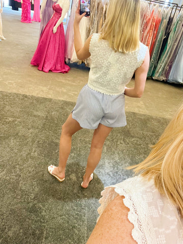 Step into sunshine with effortless French flair in the Bluebell Shorts by FRNCH. Designed with comfort and charm in mind, these crisp blue-and-white striped shorts are a wardrobe essential for breezy summer days, weekend strolls, or seaside getaways.