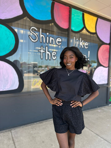 Discover a new level of style with our boutique's latest must-have - the Ciara Woven Top. This black top features intricate eyelet details, adding an element of sophistication to any outfit. Perfect for summer vacations, match it with your favorite bottoms and make a statement wherever you go!