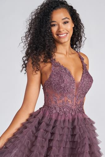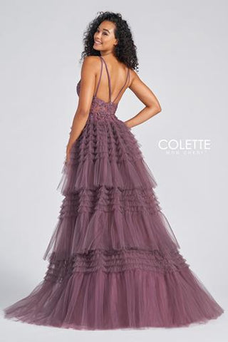 Capture the beauty and grace with Colette CL12281. Featuring a high-low, tiered skirt that elegantly flows with your every move. The embellished bodice and v-neckline add a touch of sophistication, perfect for any special occasion!