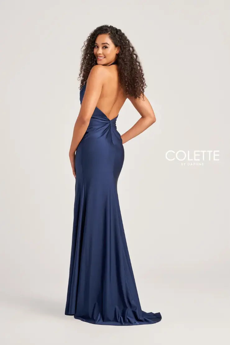 Looking for the perfect dress for your prom or Mardi Gras ball? Look no further than the Colette CL5164! This striking dress features a flattering halter neckline, open back, and a high slit for a touch of elegance. With a fitted and ruched back, you'll feel confident and glamorous all night long.