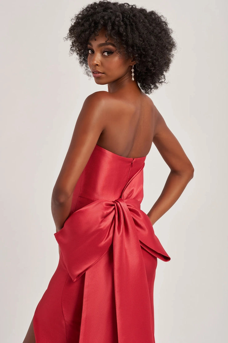 Take on the world in the daring Colette CL8470! Mikado fabric forms a long, mermaid silhouette with a curved neckline. Show off your fearless nature with a back bow and boned bodice, plus included spaghetti straps for added support. Natural waistline completes this daring and bold look.