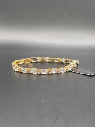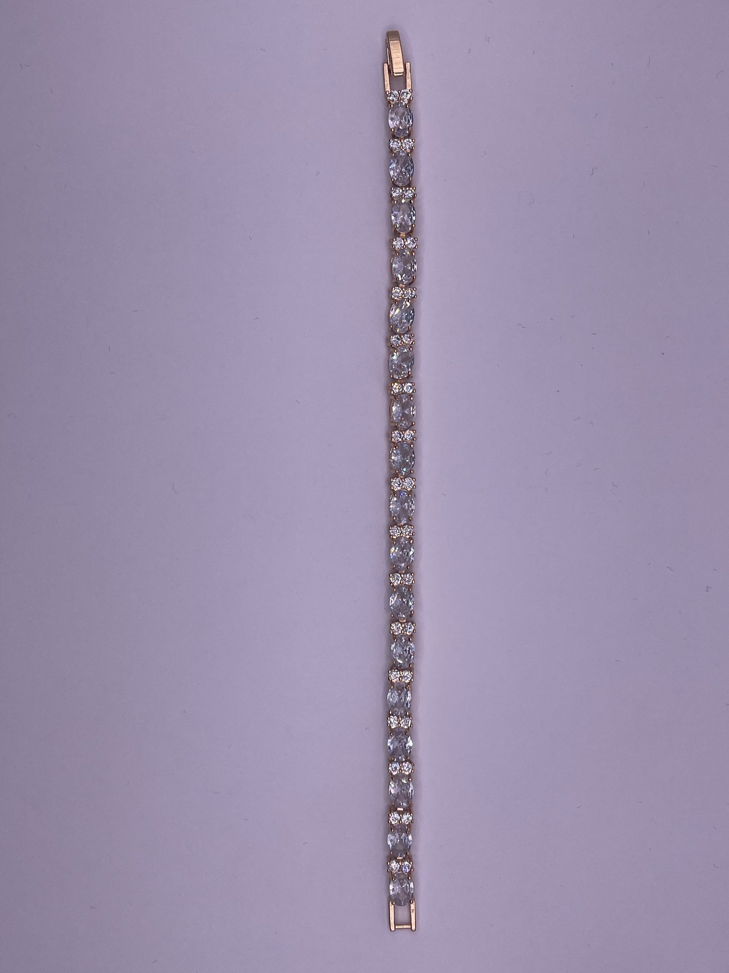 Brilliant and beautifully designed, this small oval and double rhinestone bracelet will look perfect with every ensemble. The simple yet elegant design of this piece makes it easy to pair with any outfit.