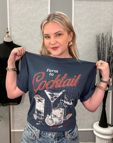 The Farm to Cocktail Tee is a versatile piece you’ll reach for again and again. Pair it with high-waisted jeans and sneakers for a casual day out, or knot it at the waist and style with a skirt for a flirty, fun look. Add a leather jacket for a chic twist on casual cool.