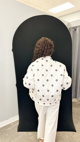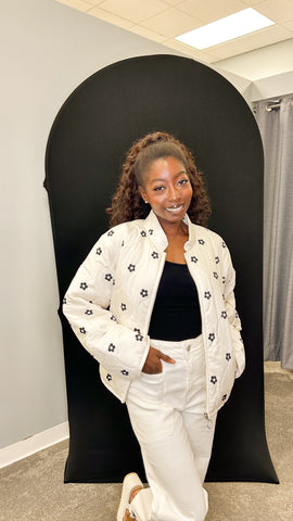 Stay cozy and stylish with our Floral Printed Puffer Jacket! This unique ivory and black jacket features a playful floral print, bringing a touch of whimsy to your winter wardrobe. Say goodbye to boring outerwear and hello to fun fashion!