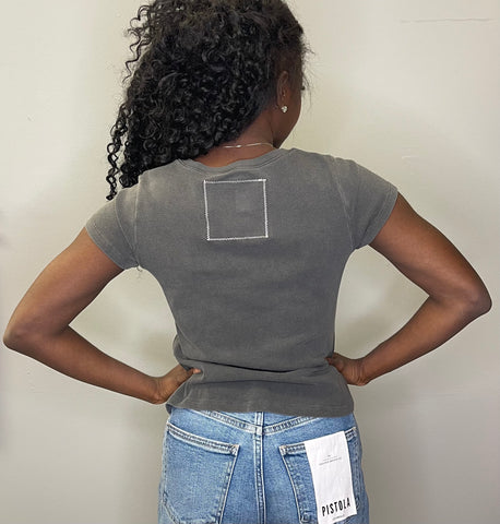 Rock legends meet conscious fashion in this Guns N’ Roses Cropped Graphic Tee by People of Leisure. Featuring an authentic “Sweet Child O’ Mine” graphic print, this faded charcoal tee is everything vintage dreams are made of. Designed with a slightly boxy cropped cut, soft hand-feel, and distressed wash, it channels a perfectly lived-in vibe from day one. Rolled sleeves and subtle stitching details elevate the look, making it easy to style with high-rise denim, a leather jacket, or oversized flannel. Whether you’re heading to a show or just vibing on a weekend coffee run, this tee brings that rebel energy.