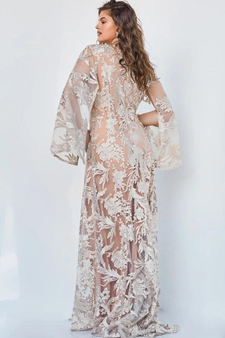 Be the epitome of elegance in the Jovani 00752 gown. Exquisitely crafted with embroidery lace, this column-style dress features a flattering V-neckline and long sleeves, delivering a stunning look for any special occasion. Embrace sophistication and grace with this timeless piece.