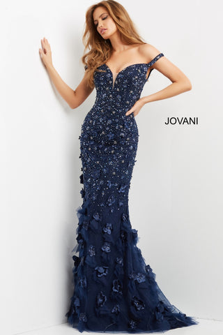 Get ready to turn heads in the Jovani 03191 dress! This stunning gown features 3D floral appliques for a unique, eye-catching look. The sweetheart neckline and off-the-shoulder straps add a touch of romance, while the bodice is encrusted with shimmering sequins and beads. Step into the spotlight with this show-stopping gown!