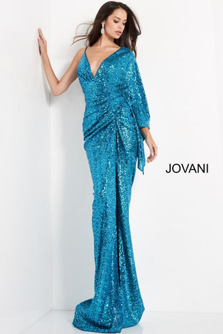 Shine bright in the Jovani 04934 sequin one shoulder evening dress. This stunning dress will make you the center of attention, with its eye-catching sequins and flattering one shoulder design. Perfect for any special occasion, this dress will have you feeling confident and fabulous all night long!