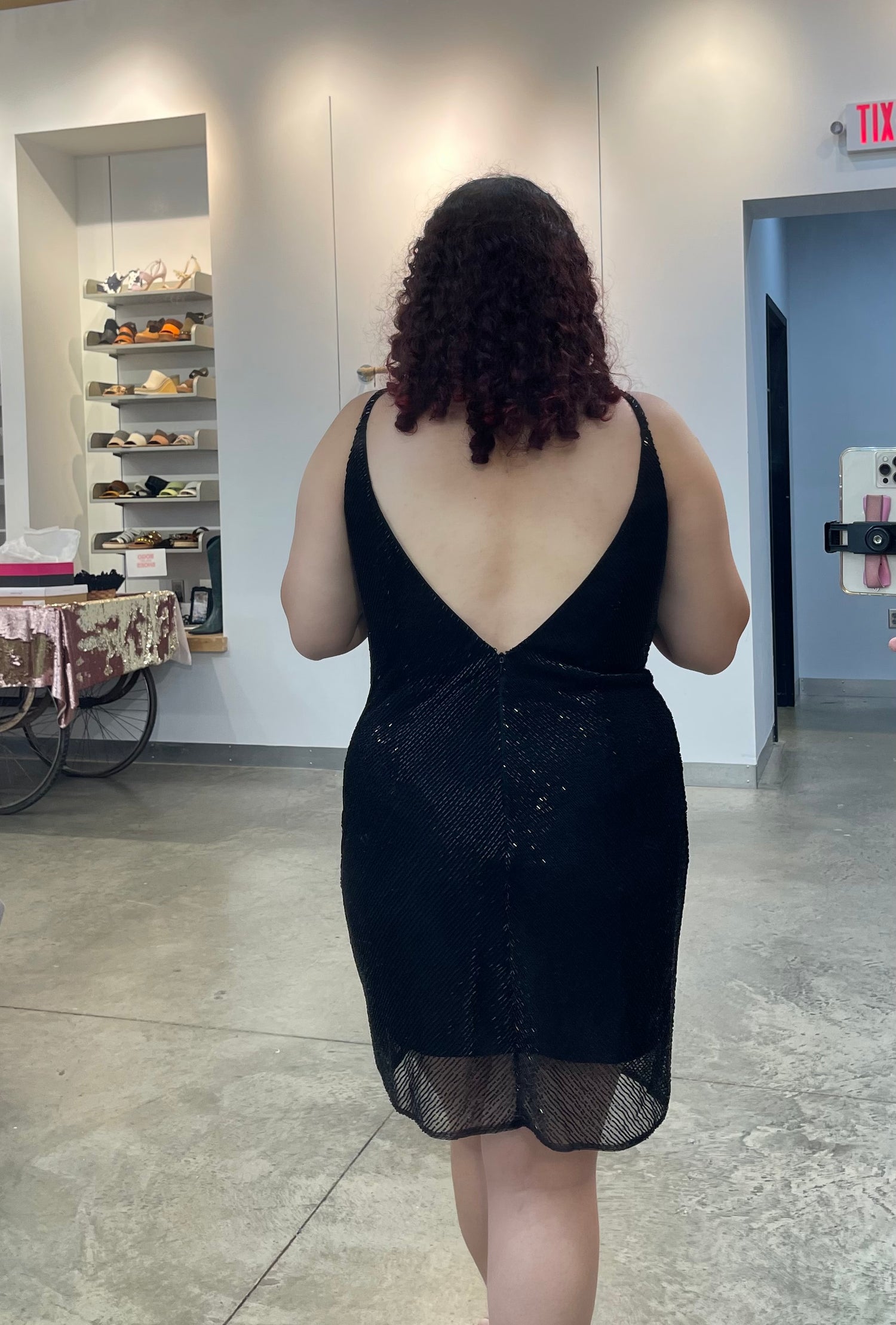Make a captivating entrance that will have all eyes on you as you grace the occasion in this exquisite Jovani 05058 dress. Crafted with a sophisticated V-neckline and open low back, this gem radiates a timeless allure. Expertly adorned with bugle beads dripping, the slim-fitted skirt epitomizes elegance and timeless beauty. Be the belle of the ball with this stunning Jovani piece.