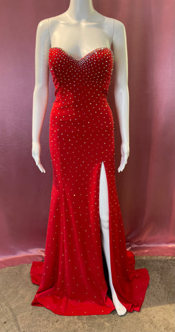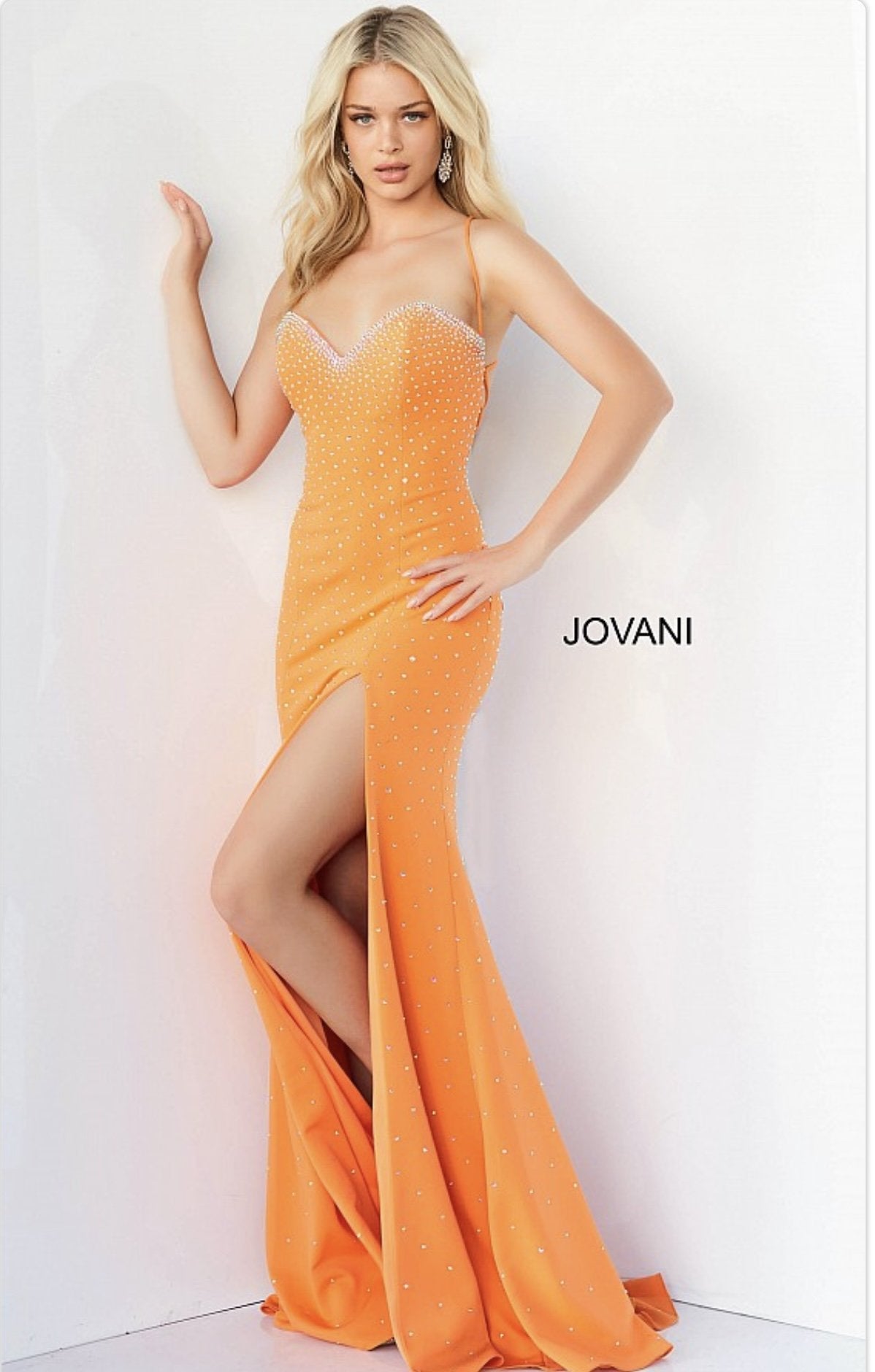 This exquisite prom dress from Jovani is an eye-catching conversation starter. The sweetheart neckline and tie back add a touch of sophistication and elegance. The perfect choice for your special evening.