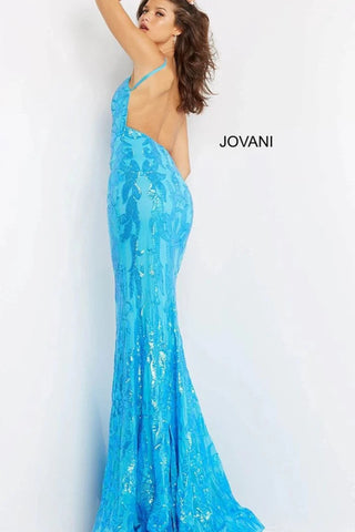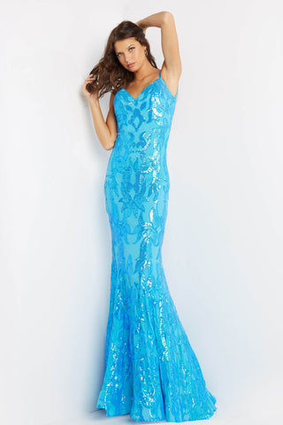 Look stunning in this Jovani 07784 sequin embellished formal dress. The v-neckline and open back design provide a sophisticated look, perfect for any special occasion. The sequin detailing adds sparkle to a classic long dress look.