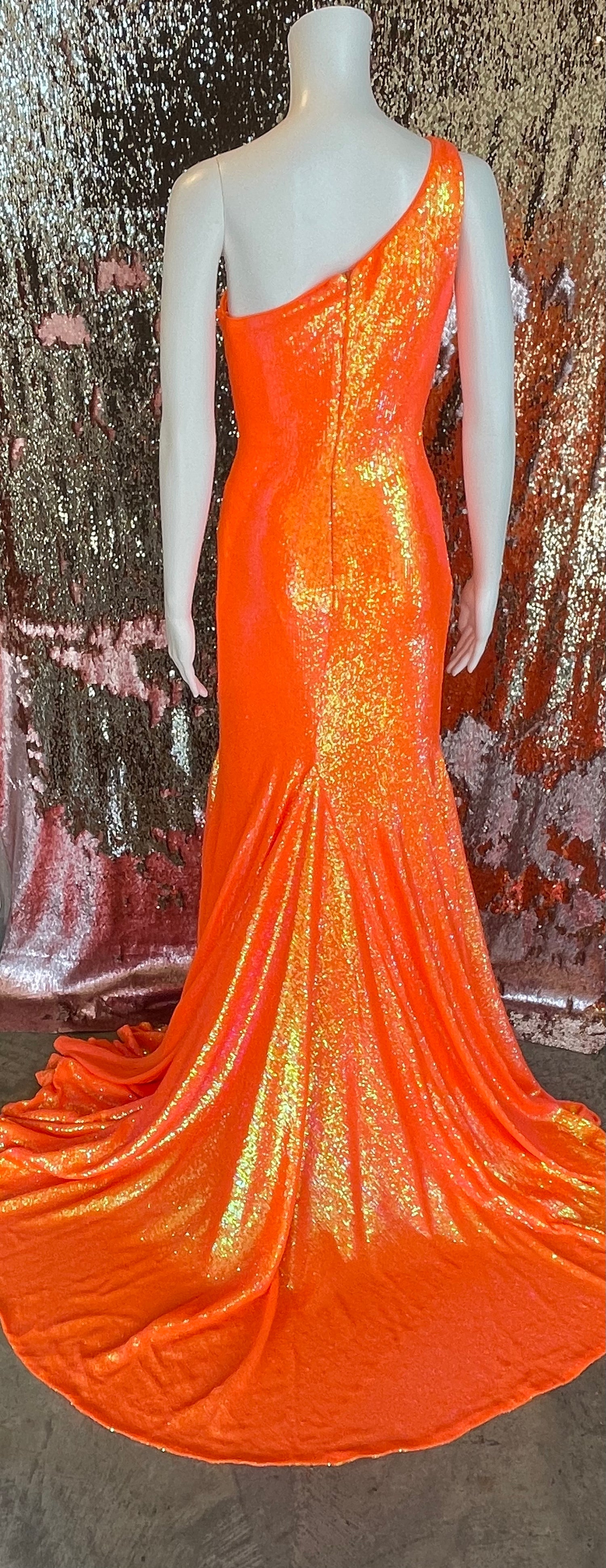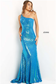 Show up in style at prom in Jovani 08177. This one-shoulder sheath dress is made from lightweight and comfortable material, fully sequined for a touch of sparkle. The perfect choice for any formal occasion.